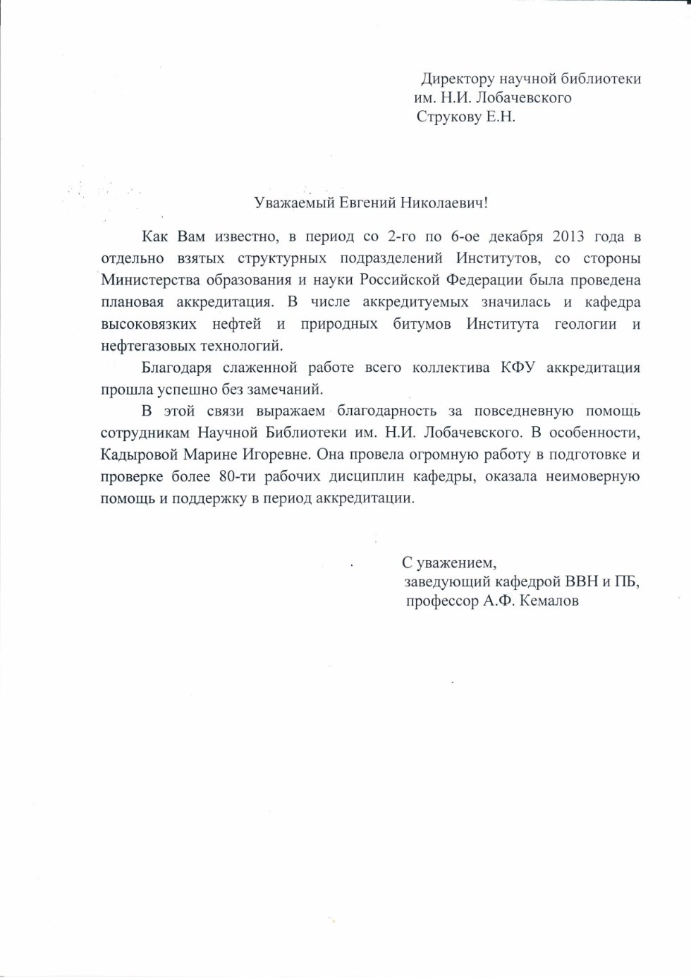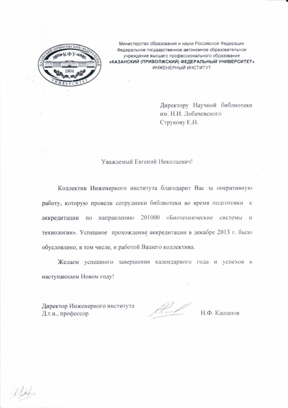 ![]() | Благодарность директору Е.Н.Струкову и коллективу библиотеки от Директора Института филологии и межкультурной коммуникации имени Льва Толстого КФУ за оказанную поддержку в организации выставки для конференции «Мировая тюркология и Казанский университет». |