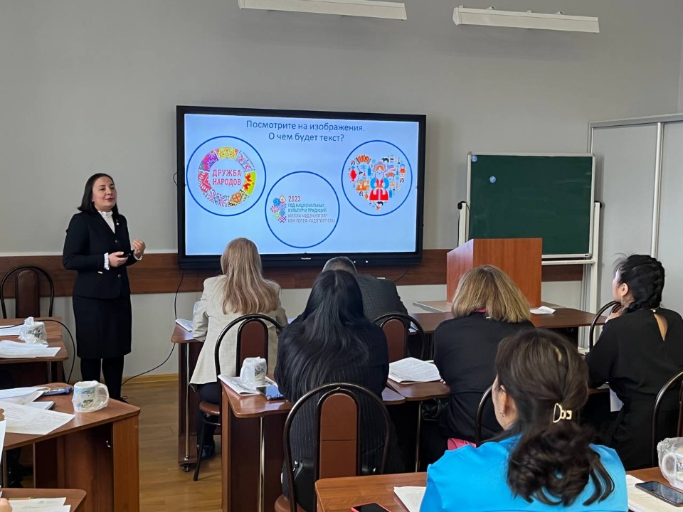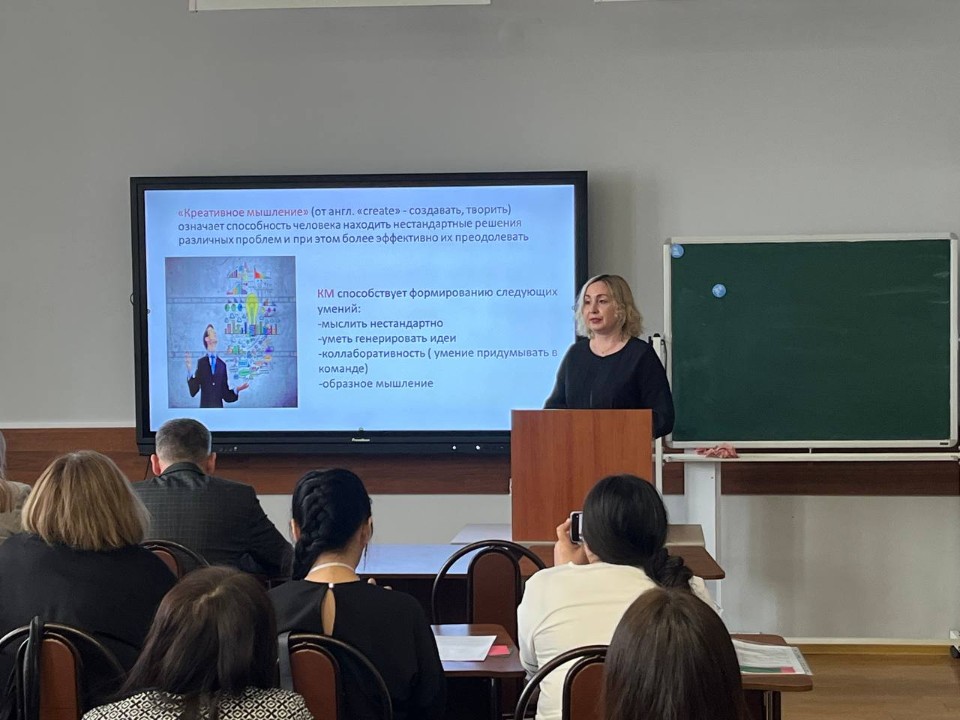 Началась следующая часть стажировки, которая посвящена теме «Функциональная грамотность – основа конкурентоспособности личности в современном мире». Учителя и руководители УМО провели мастер-классы. Харисова Г.Ф., руководитель УМО родного языка и родной литературы, рассказала о читательской грамотности. Дунаева О.С., руководитель УМО учителей математики и информатики, рассказала о математической грамотности. Храмова О.Н., руководитель УМО учителей естественно-научных предметов, посвятила свое выступление естественно-научной грамотности на уроках физики. Билалова Д.С., учитель истории и обществознания, рассказала о финансовой грамотности на своих предметах. Золотухина Ю.А., учитель русского языка и литературы, рассказала о развитии глобальных компетенциях на уроках. Усманова А.Р., руководитель УМО учителей иностранного языка, посвятила выступление развитию креативного мышления.