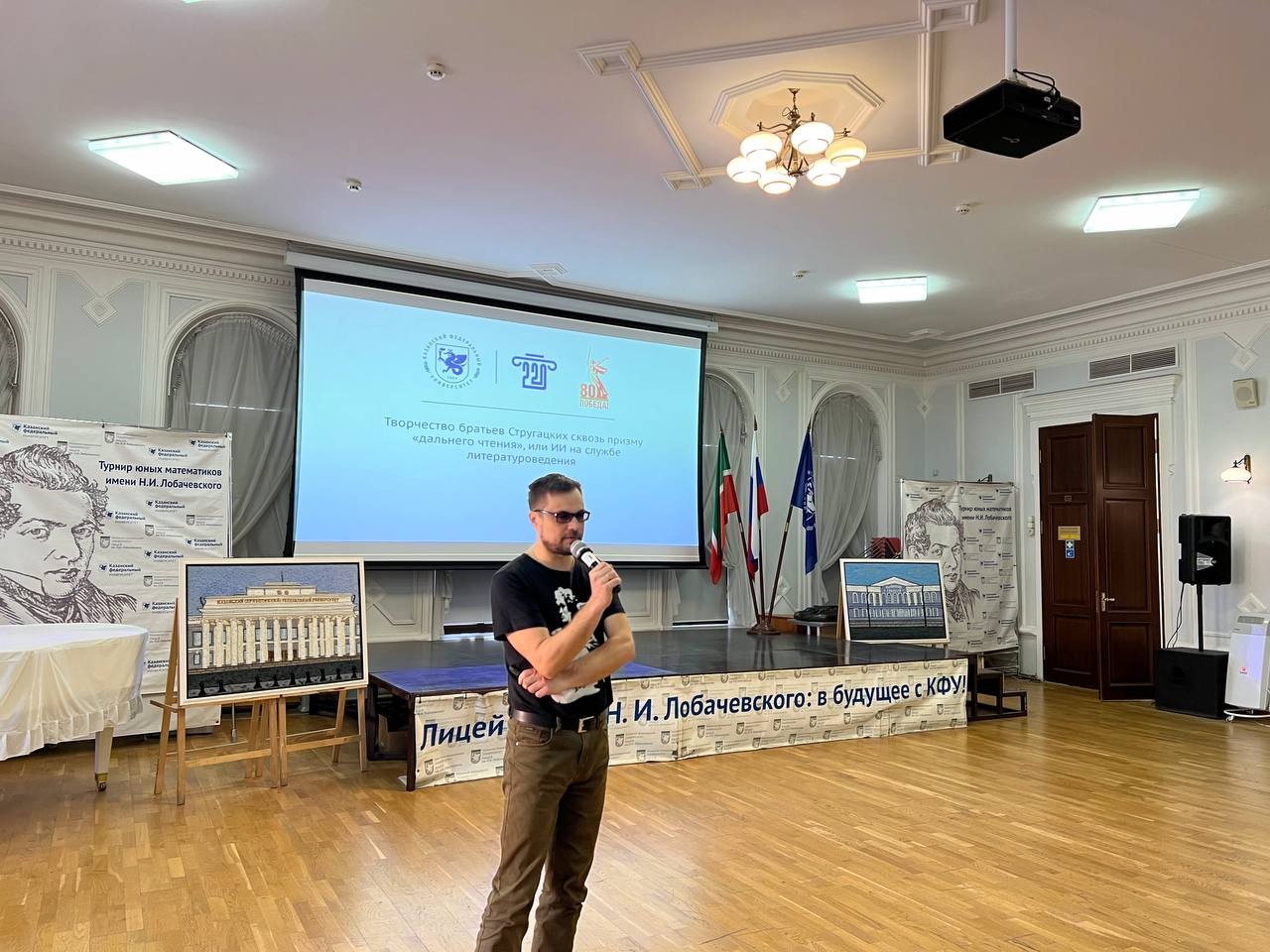 Антон Сергеевич Афанасьев, доктор филологических наук, заведующий кафедрой русской литературы и методики ее преподавания ИФМК КФУ, прочитал лицеистам лекцию «Творчество братьев Стругацких сквозь призму «дальнего чтения», или ИИ на службе литературоведения».