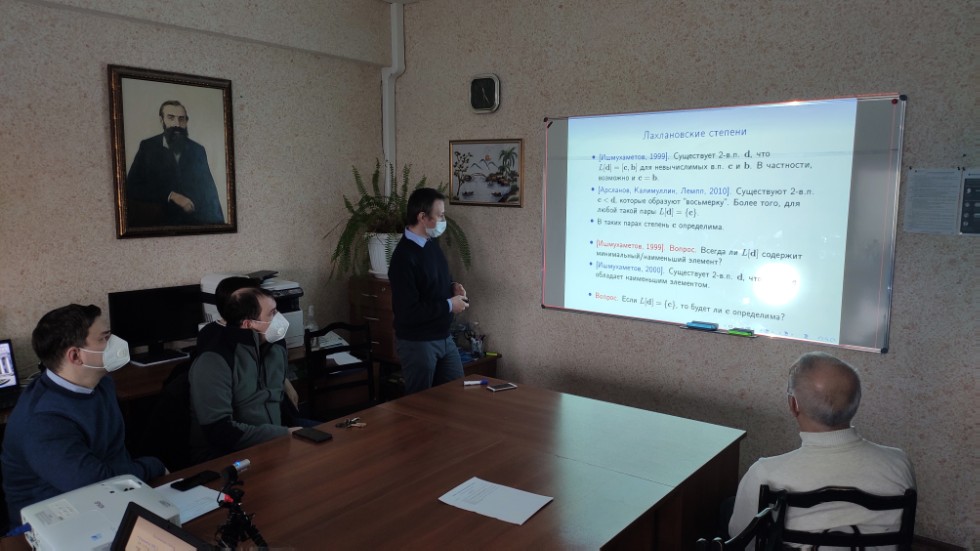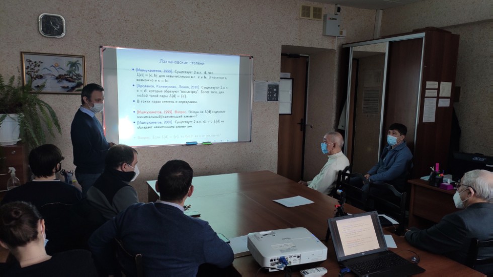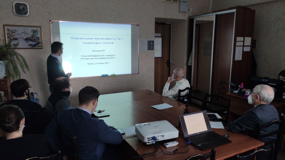 27 января 2021 года в 501 аудитории 2-го учебного корпуса КФУ состоялась традиционная ежегодная Итоговая научная конференция кафедры алгебры и математической логики ИМиМ им. Н.И. Лобачевского КФУ. Сотрудники кафедры выступили с докладами, которые были посвящены итогам научной работы за прошедший год.