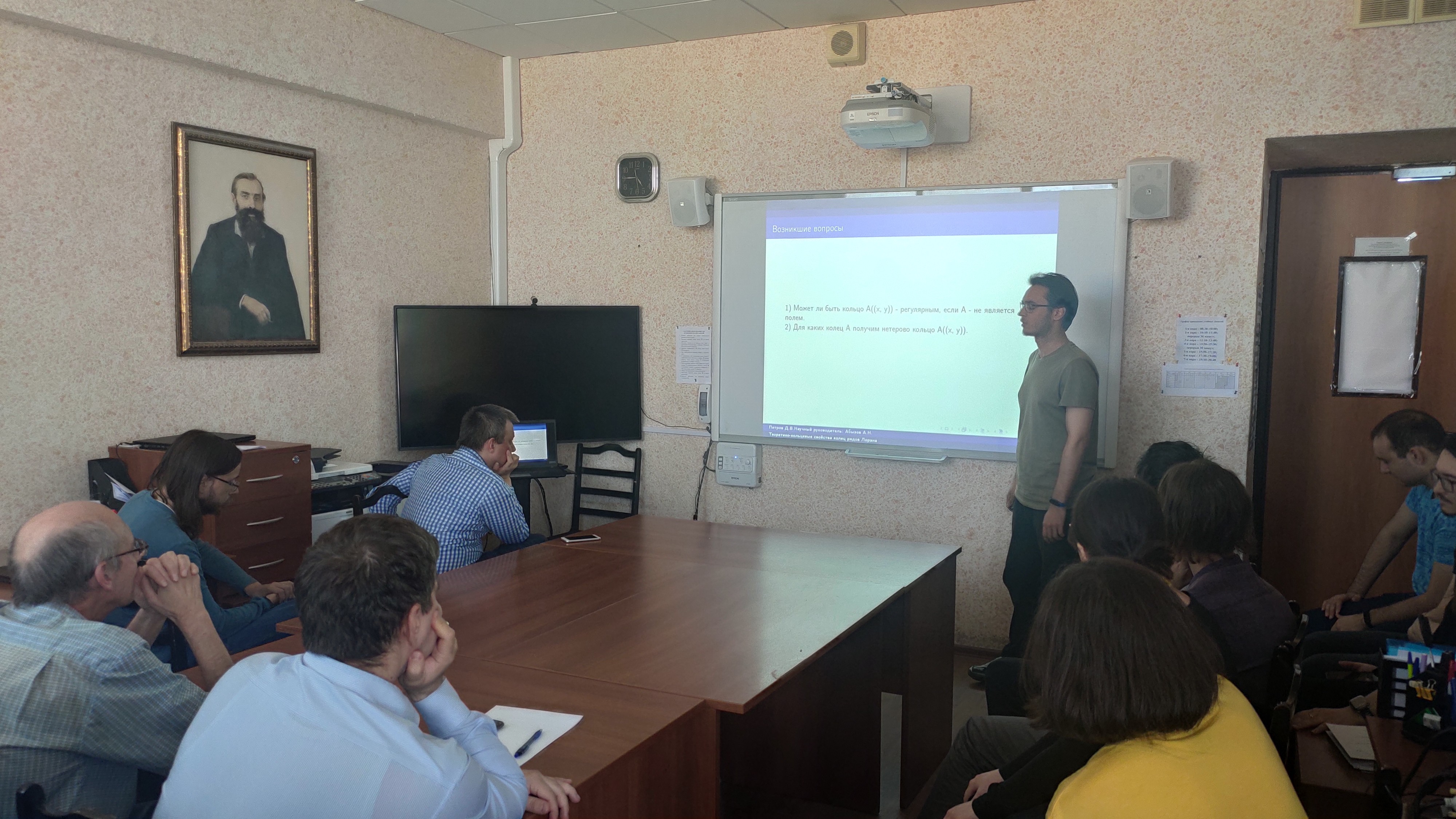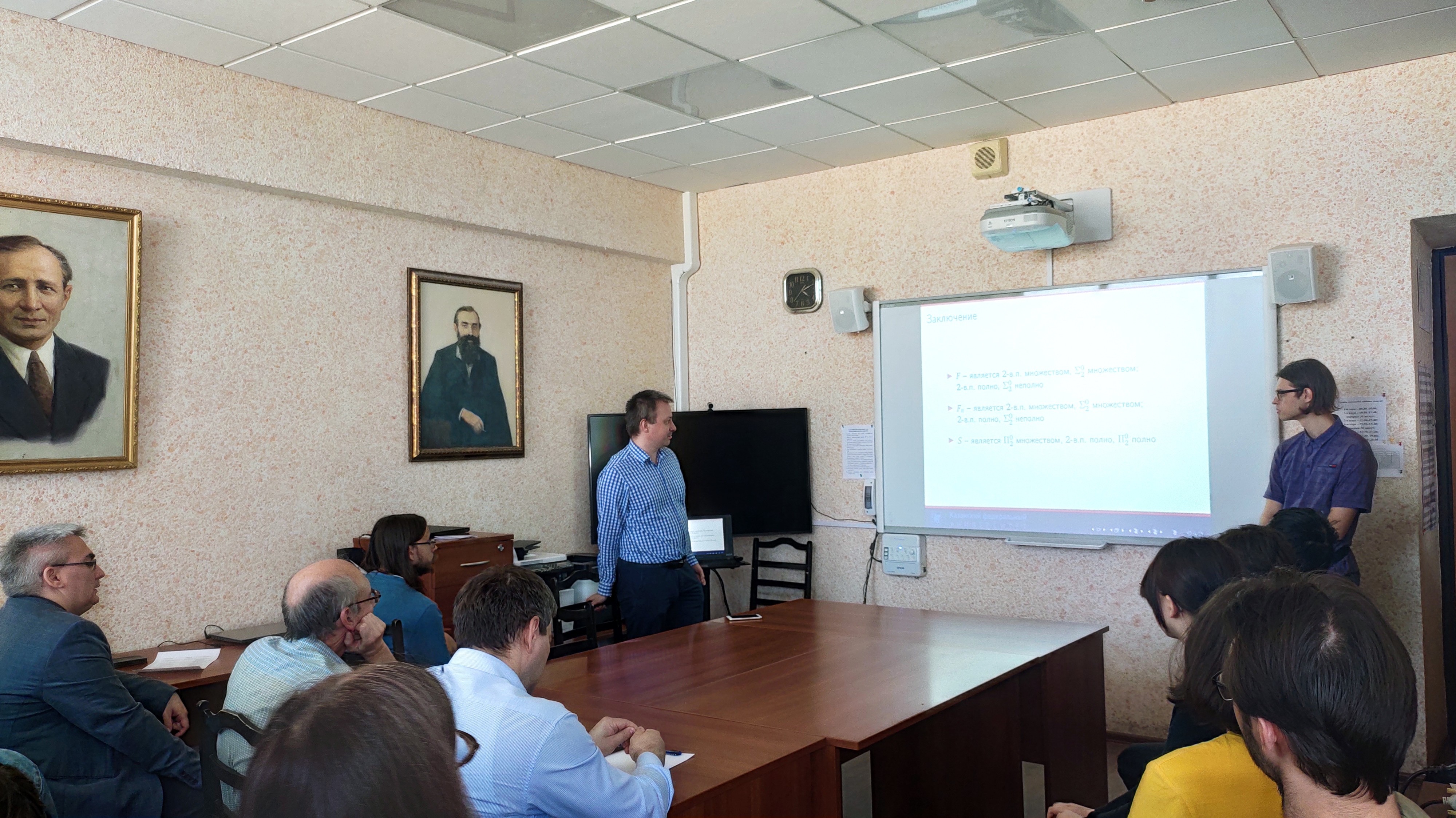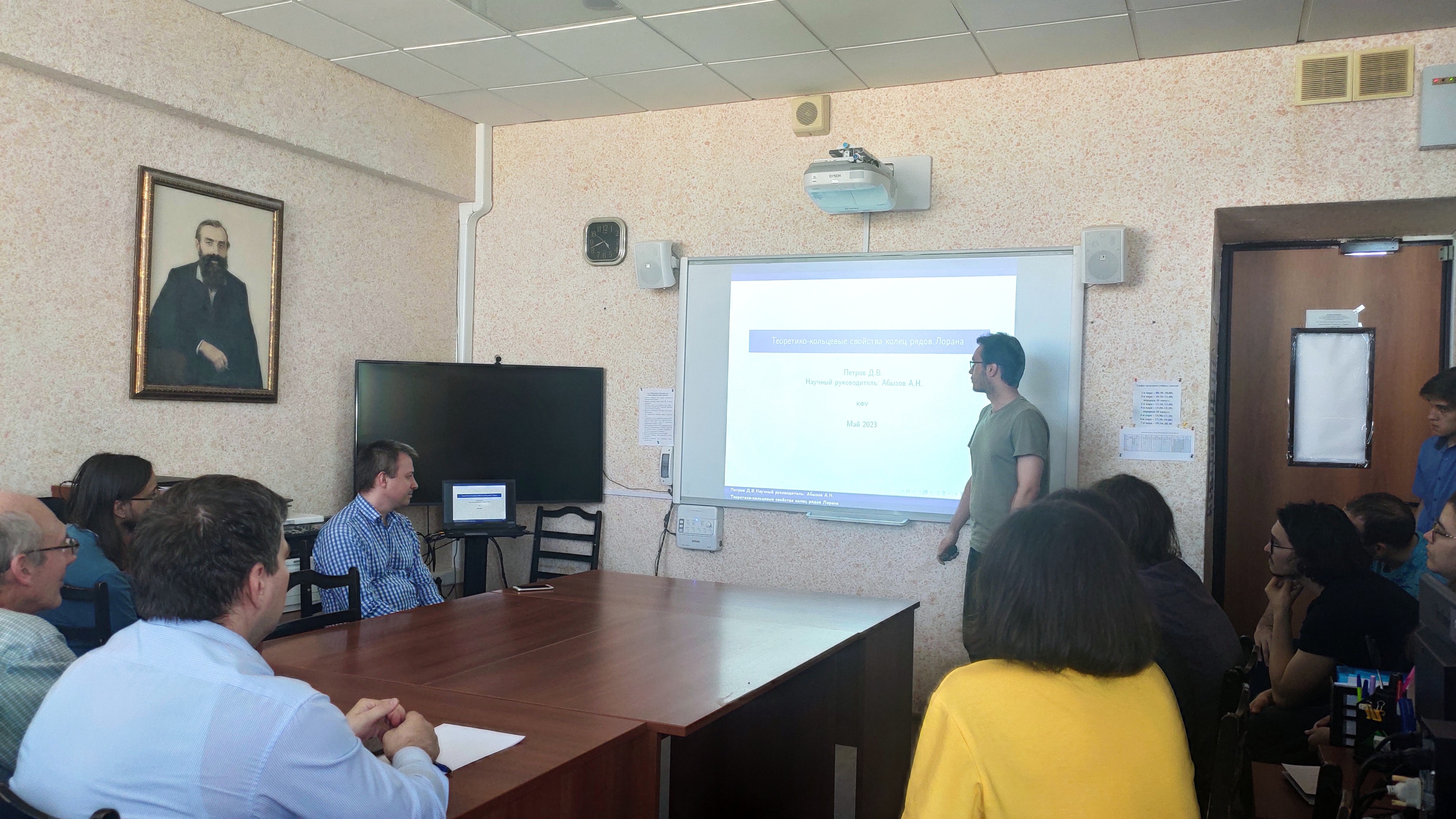 В пятницу 19 мая 2023 года в 501 ауд. состоялась защита курсовых работ студентов 3 курса, специализирующихся по кафедре алгебры и математической логики. В ходе защиты студенты поделились своими результатами.