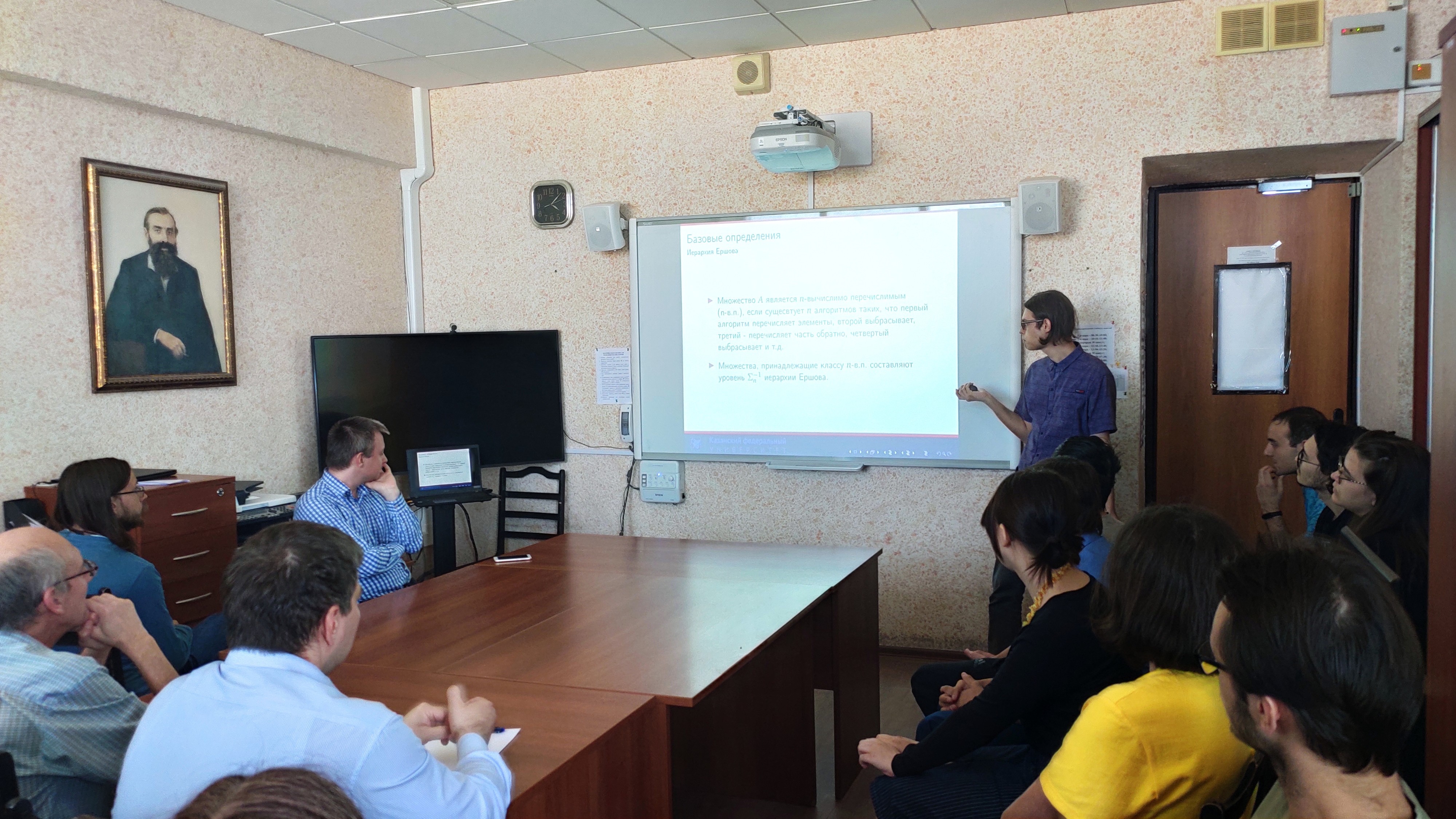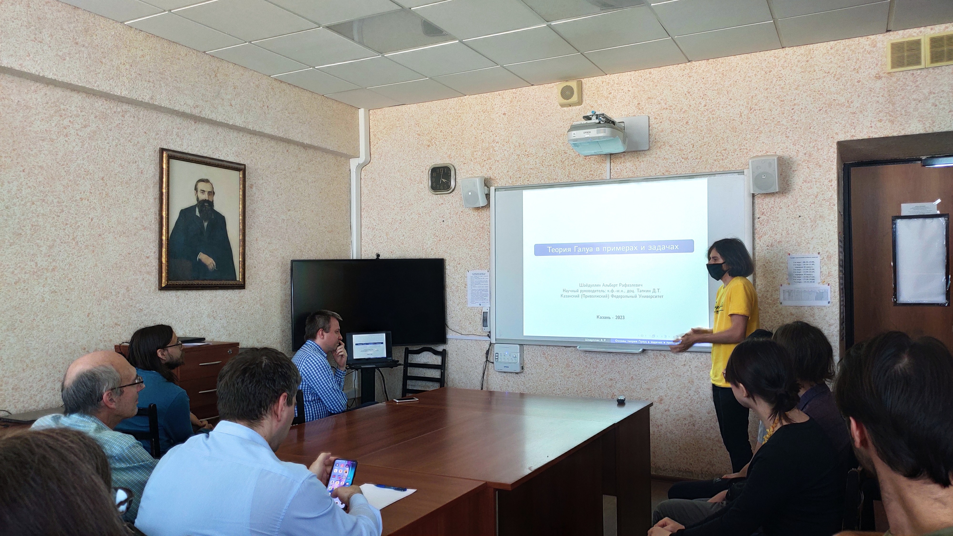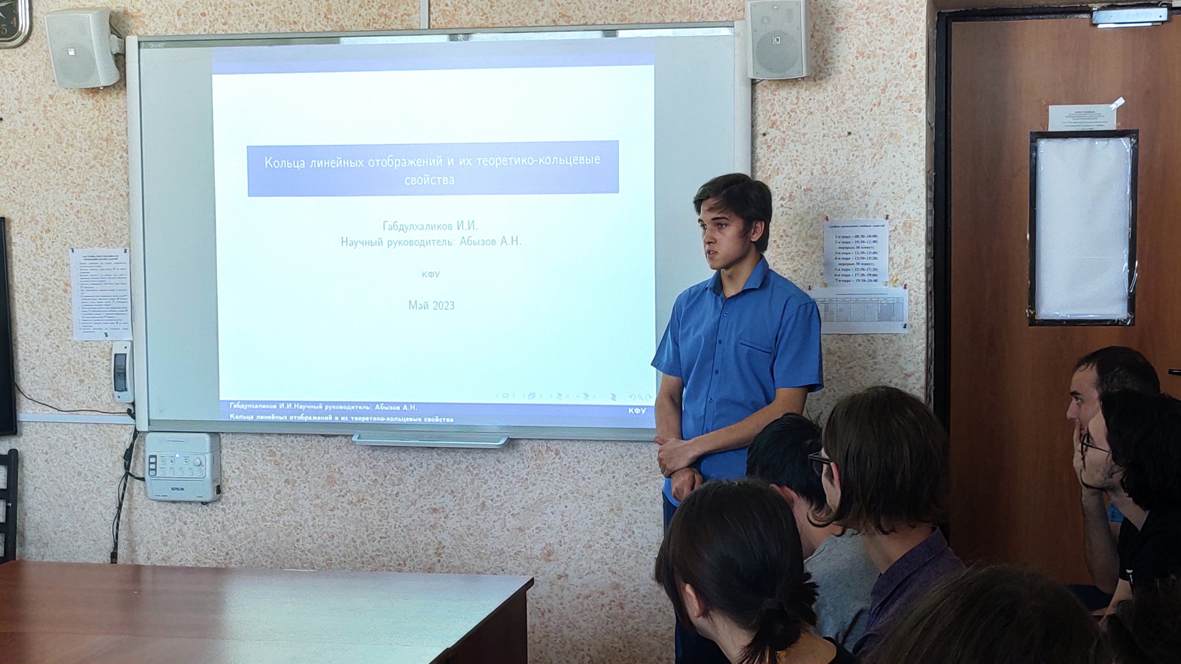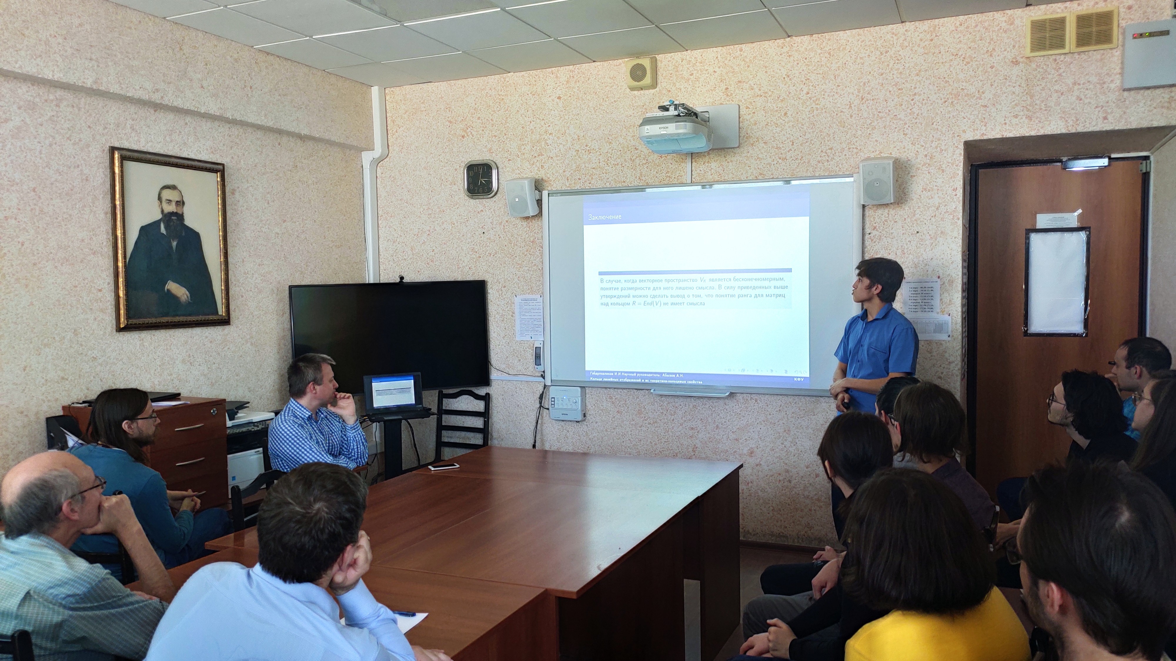 В пятницу 19 мая 2023 года в 501 ауд. состоялась защита курсовых работ студентов 3 курса, специализирующихся по кафедре алгебры и математической логики. В ходе защиты студенты поделились своими результатами.