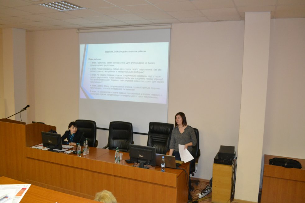 - Сайфутдинова Е.В., учитель математики высшей категории МБОУ «СОШ № 177» г. Казани с докладом «Дистанционный урок «Практические приложения подобия треугольников»;