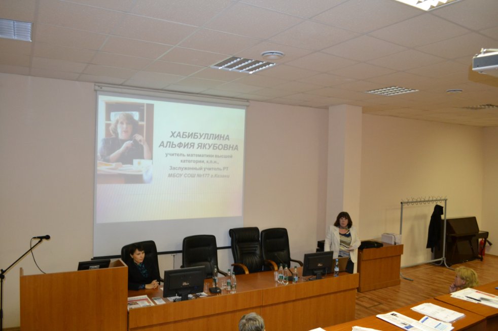 - Хабибуллина А.Я., к.пед.н., учитель математики МБОУ «СОШ № 177» г. Казани с докладом «Методика урока одной задачи при подготовке к заданиям ЕГЭ по геометрии»;