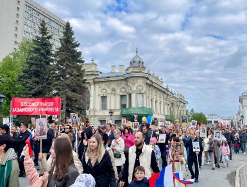 В честь празднования 80-летия Победы в Великой Отечественной войне проректоры, директора, профессорского-преподавательский состав, студенты и выпускники Казанского федерального университета присоединились к шествию «Бессмертного полка».