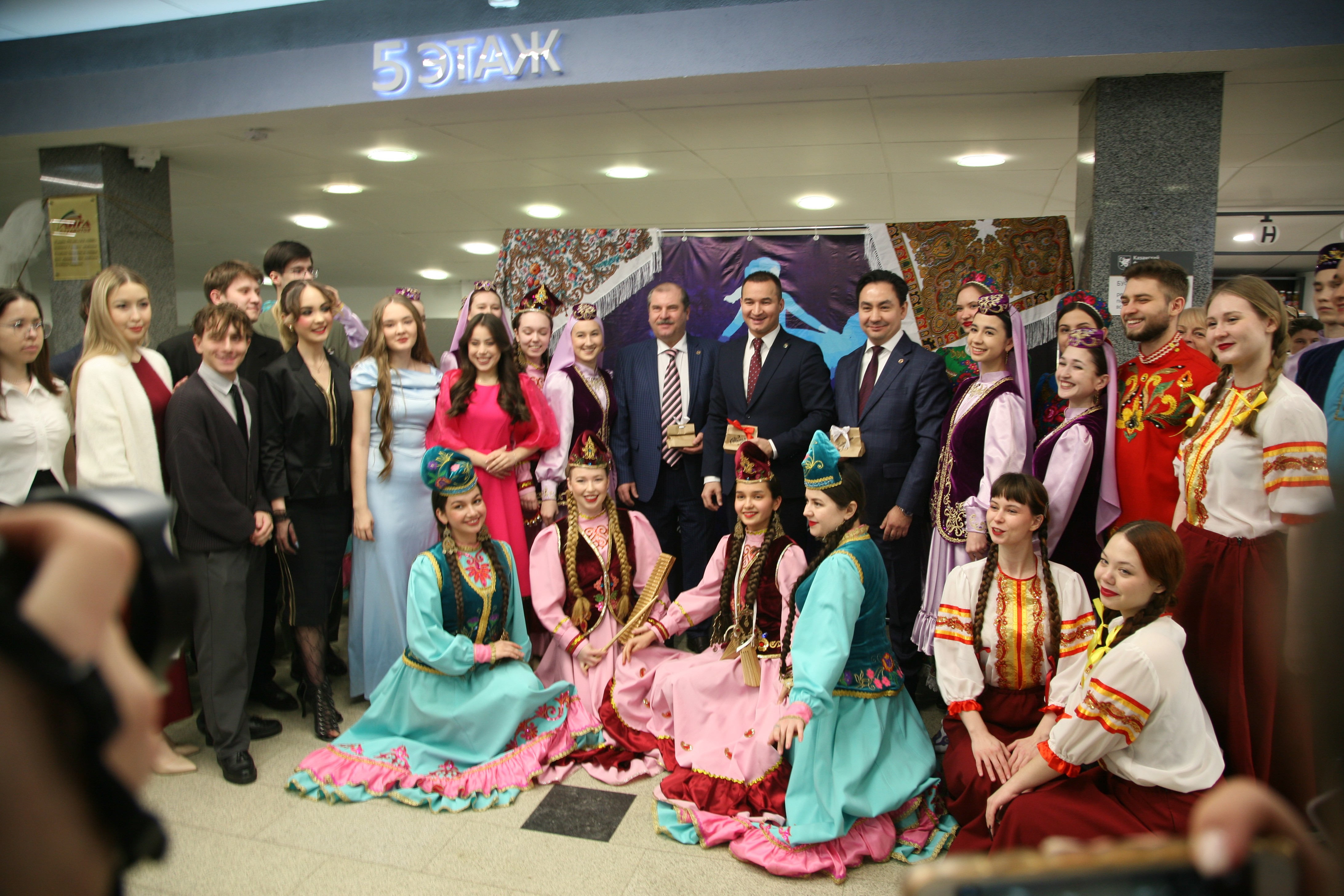 25 января фойе Большого зала УНИКСа празднично оформлено и заполнено молодыми студенами, и не только Татьянами, которые встречают наших бывших выпускников из руководства Республики, университета, преподавателей и сотрудников, ну и, конечно, виновников торжества, его величество - СТУДЕНТОВ !