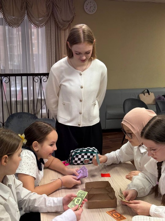 Студенты рассказали ребятам о важности составления и распределения своего бюджета. Вместе они попробовали распределить деньги героев мультфима "Смешарики", а в конце занятия сделали выводы о том, как же все таки правильно распоряжаться своими деньгами. Смышленные не на свой возраст ученики поразили всех своими знаниями финаносовой грамотности: они отметили важность оплаты налогов, сначала отложили деньги на важные бытовые расходы, но не забыли и про развлечения и, конечно, смогли верно назвать выводы занятия.