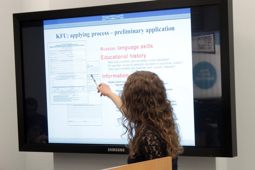 Затем сотрудник Департамента внешних связей Ландыш Закирова объяснила, как пошагово происходит оформление документов для иностранных учащихся, а также ответила на вопросы представителей рекрутинговых компаний.