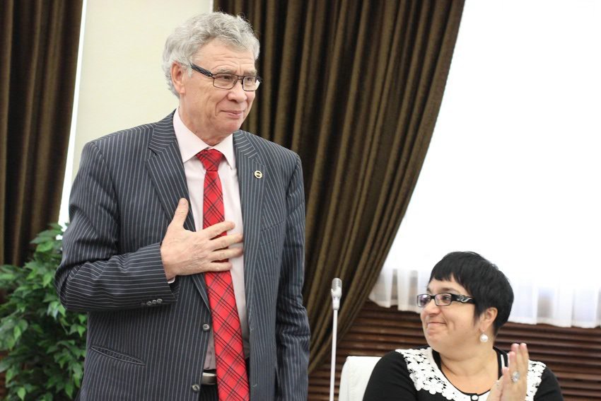 От лица ученых выступил Рафаэль Черкасов: «Благодарим руководство университета и вас, уважаемые коллеги, за столь высокую оценку нашей работы. Мы не один десяток лет отдали университету и, наверное, оставили след в истории науки. Не можем пожаловаться, что обделены вниманием научного сообщества, но получить благодарность от родного университета дорогого стоит. Поскольку сегодня особый день, то я буду считать, что это признание в любви университета ко мне!»