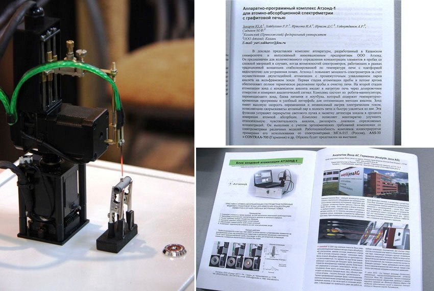 В рамках конференции прошла выставка оборудования для инструментального анализа веществ и материалов. Казанцы выступили на ней с научными докладами и продемонстрировали образец созданного ими прибора АТЗОНД-1 для атомно-абсорбционного анализа. Прибор представляет собой роботизированную систему, обеспечивающую рекордную чувствительность и точность измерений концентрации следовых элементов на атомно-абсорбционных спектрометрах.