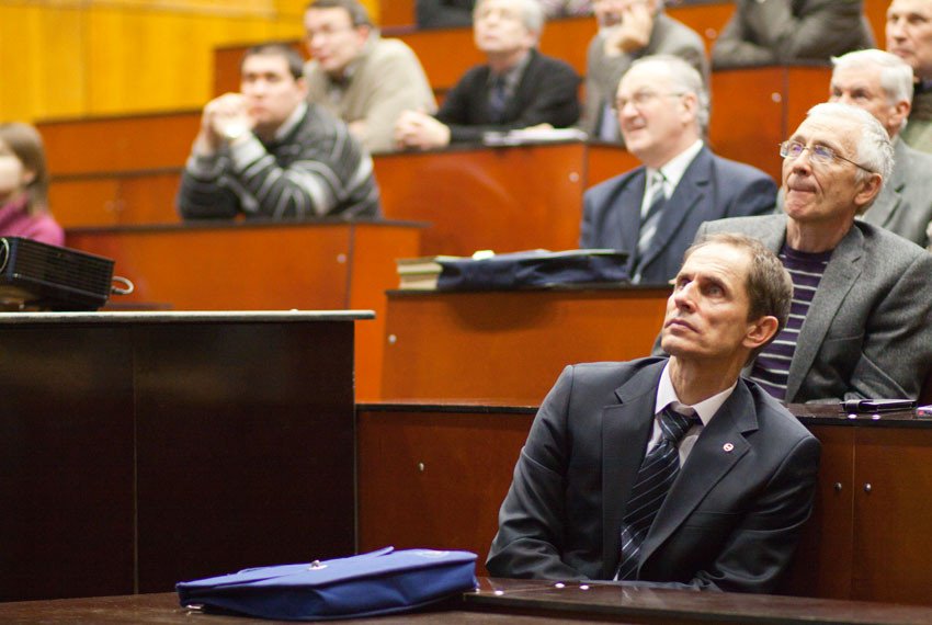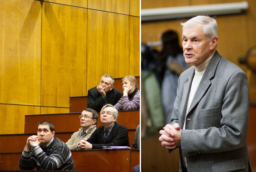 В аудитории собралось немало слушателей. Кроме студентов и профессоров, пришедших на семинар, были знакомые и родственники Семена Александровича. Первым выступил профессор Борис Кочелаев, он познакомил с биографией Альтшулера, поделился трогательными личными воспоминаниями. Вадим Голенищев-Кутузов занимался экспериментами, связанными с явлением акустического парамагнитного резонанса, предсказанного А.С.Альтшулером, и его рассказ был связан с историей открытия парамагнитного резонанса и сути данного явления.