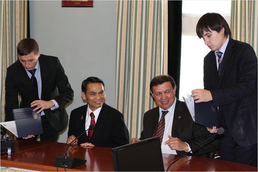 Добавим, что делегация из Таиланда прибыла в Казань в воскресенье, гости также встретились с руководством Института физики КФУ, обсудили перспективы сотрудничества, планы работы по проекту «Видеозадачник на Tablet PC». В результате родился весьма конкретный перечень действий на будущее: организация краткосрочных курсов с тайскими учителями и студентами; организация конкурсов научных проектов и олимпиад по физике среди школьников; создание совместных мультимедийных продуктов; проведение совместных научных конференций; обмен учебной литературой; организация встречных визитов.