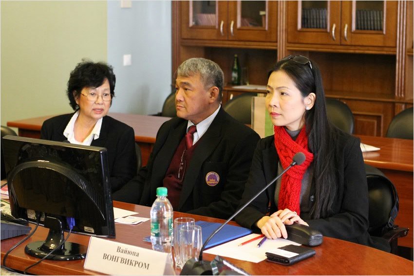 В делегацию вошли: президент Университета Суан Сунандха Раджабхат Чуангчоте Бхунтувеч, руководитель аппарата университета Корн Даббаранси, директор Международного колледжа университета Кронгтонг Хаирири.