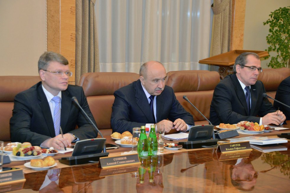Поддерживая тезис Президента РТ о необходимости системной работы высшей школы республики по всем направлениям, ректор КФУ подчеркнул, что назрел вопрос координации взаимодействия вузов и предприятий в масштабах Татарстана. Ильшат Гафуров напомнил, что на заседании «Татнефтехиминвест-холдинга» и на Совете директоров АПП (которые проходили с участием главы республики) КФУ уже предложил взаимовыгодную программу сотрудничества с экономическим комплексом республики, включающую создание системы подготовки специалистов для предприятий, проведение НИОКР по их заданиям и другие подобные мероприятия.Полагаю, - сказал выступающий, - что в какой-то перспективе можно сформировать консорциум из ведущих вузов и крупных предприятий с высокой степенью наукоемкости производства для решения нескольких важнейших приоритетных задач, – с распределением «ролей» и учетом интересов каждой стороны.