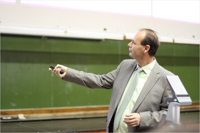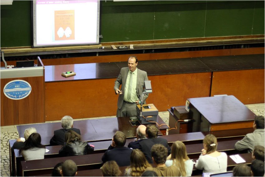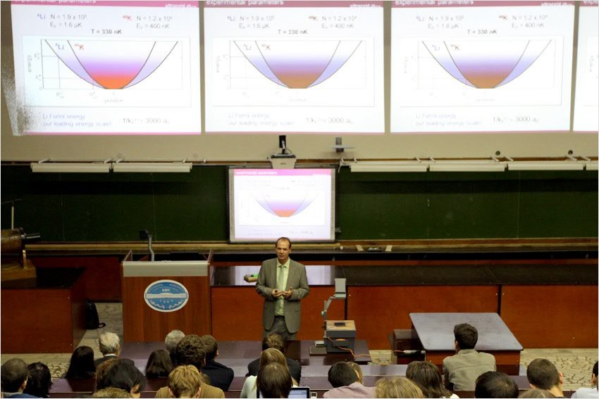 Своими впечатлениями о лекции поделился ассистент кафедры общей физики Юрий Лысогорский: «Профессор Гримм рассказал об интенсивно развивающейся области физики – физике ультрахолодных температур, эта область науки напрямую имеет отношение к глубинным ее понятиям и в последнее десятилетие очень бурно развивается. Газы, о которых сегодня говорилось, в понятии физиков, то есть в обиходе они не встречаются, так как состоят из отдельных атомов металлов, таких, как литий, калий. Было очень интересно, думаю, не только мне, но и всем. Тем более что эта тема, так или иначе, изучается и в рамках университета тоже».