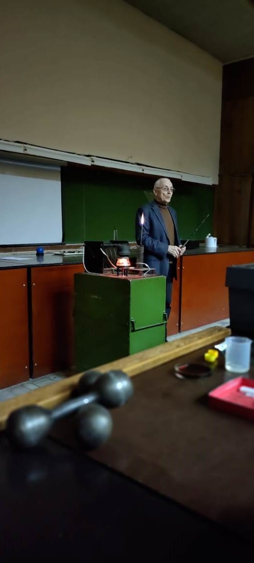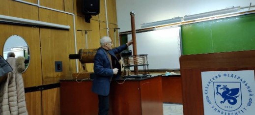 С приветственным словом выступил директор Марат Ревгерович Гафуров. Программу для гостей подготовили основательную: о приоритетных направлениях, образовательных программах и студенческой жизни подробно рассказала заместитель директора по научной деятельности Ирина Владимировна Романова Презентация.; далее слушателям элегантного возраста были продемонстрированы доцентом кафедры общей физики Рустамом Валиевичем Даминовым различные эффектные опыты по всем разделам физики. Третья часть встречи была посвящена ознакомлению с учебными лабораториями института.