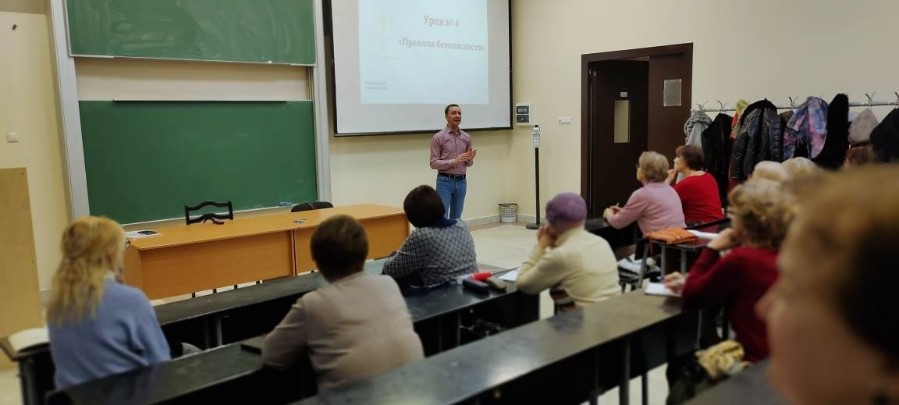 Вторая в этом семестре встреча слушателей и спикера была посвящена актуальной и злободневной теме - мошенничеству. В ходе лекции Михаил Евгеньевич предостерегал аудиторию от самых распространенных ошибок - не сообщать никому данные банковской карты, и смс- пароли, рассказал о приоритете использования опцией интернет- платежа, удобстве использования сервиса "Госуслуги". "Сейчас он представлен в более удобном для старшего возрасте формате", - сообщил лектор.