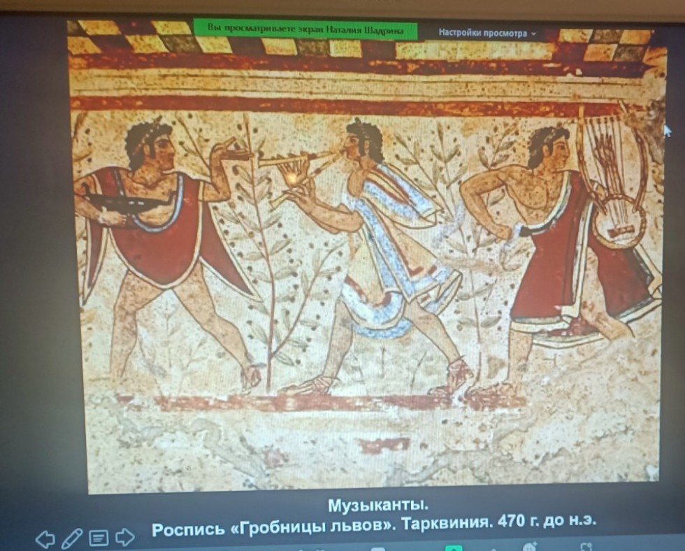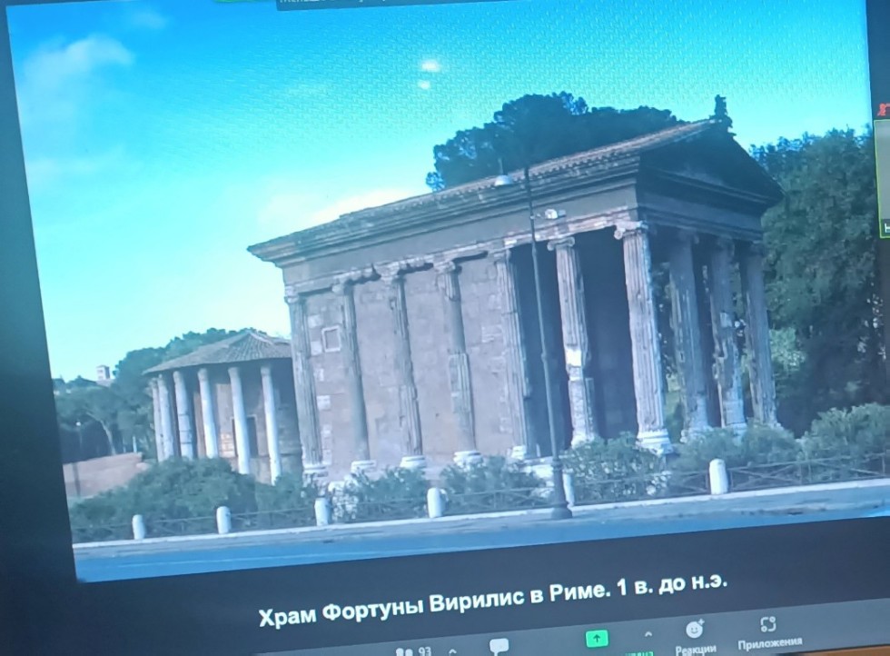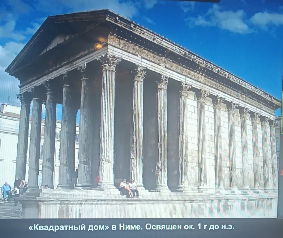 Темой лекции лекции было искуство и архитектура древнего мира. Наталья Анатольевна ознакомила слушателей с красочной презентацией, в которой акцентировала внимание слушателей на "жемчужинах" искусства древнего мира, остановилась подробно на этрусском искусстве. продемонстрировала слайды с изображениями храма Весты, храма Фортуны, римского Пантеона, акведуков во Франции и Риме и много другое.