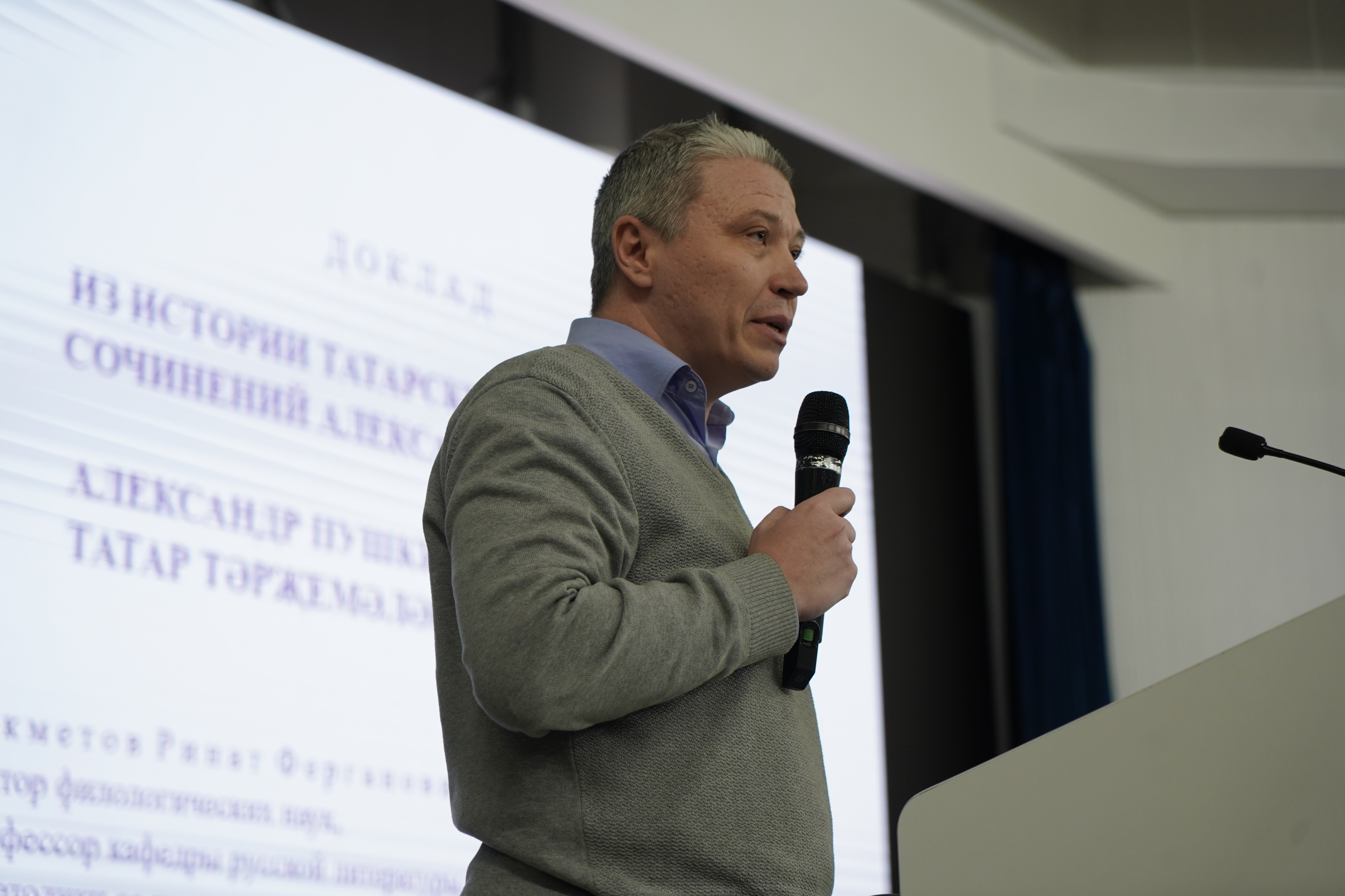 На пленарном заседании прозвучали доклады профессоров кафедры русской литературы и методики ее преподавания ИФМК Алексея Пашкурова «Литературная игра в поэме А.С. Пушкина "Руслан и Людмила"» и Рината Бекметова «Из истории татарских переводов сочинений А.С. Пушкина», посвященные юбилейной дате. О воплощении творчества писателя на театральных сценах Казани рассказала старший научный сотрудник Центра искусствоведения Института языка, литературы и искусства имени Галимджана Ибрагимова Академии наук РТ, кандидат филологических наук Елена Шевченко.