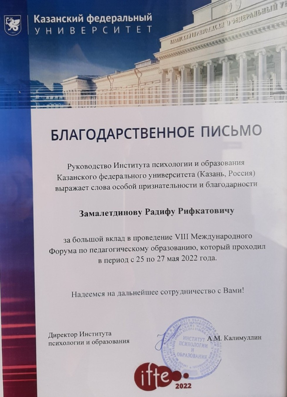 25 мая 2022 года гимном КФУ в исполнении хорового коллектива «Созвучие» ИФМК КФУ открылся VIII Международный форум по педагогическому образованию IFTE-2022.