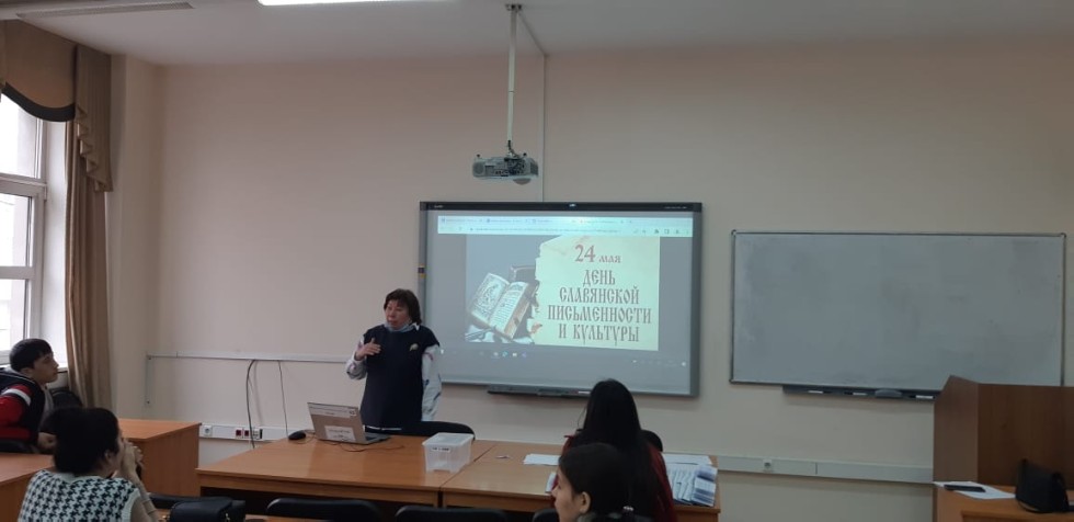 24 мая в рамках празднования Дня славянской письменности и культуры преподаватели кафедры русского языка и методики его преподавания ИФМК на своих занятиях со студентами и магистрантами провели беседы о создании кириллицы, истории славянской письменности, о книгопечатании в России и мире. Студенты и магистранты также проверили свои знания по теме «Славянский алфавит и его создатели», приняли участие в конкурсе написания текстов на основе славянских алфавитов и др.