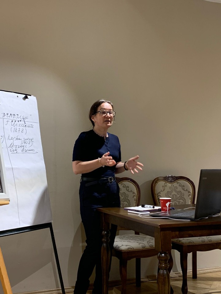 Казан федераль университетының Г.Тукай исемендәге милли мәдәният һәм мәгариф югары мәктәбенең абитуриентлары һәм 3 курс студентлары әдәбият укытучысы КФУ доценты Гөлфия Расил кызы Гайнуллина җитәкчелегендә “Татар китабы йорты”нда КФУда аспирантура тәмамлаган язучы Ландыш Әбударованың Г.Исхакый һәм Д.Джойс әсәрләрен чагыштырып бәяләү хакындагы дәресен тыңладылар.