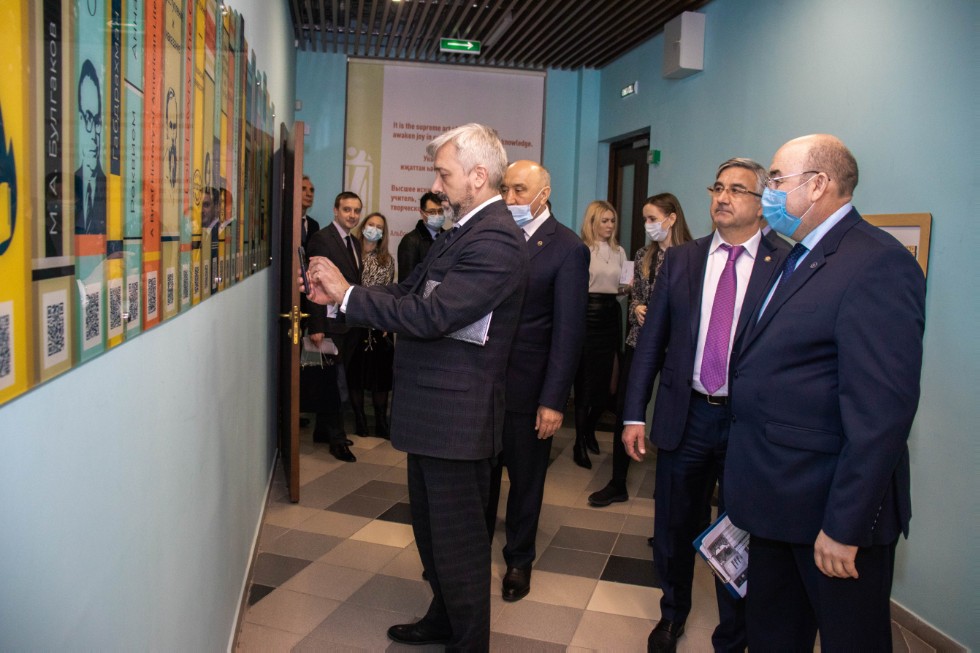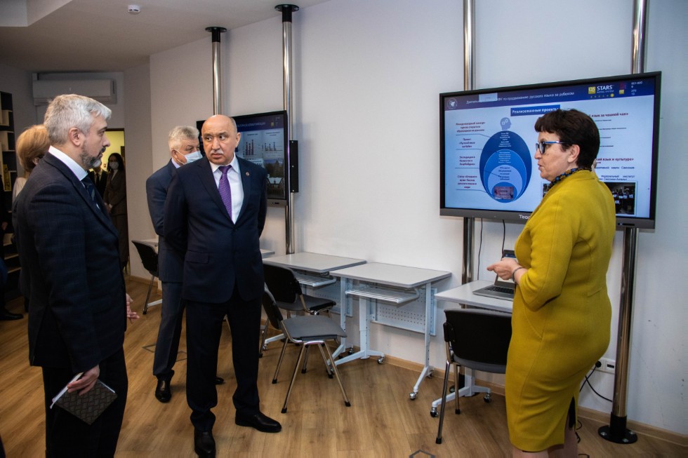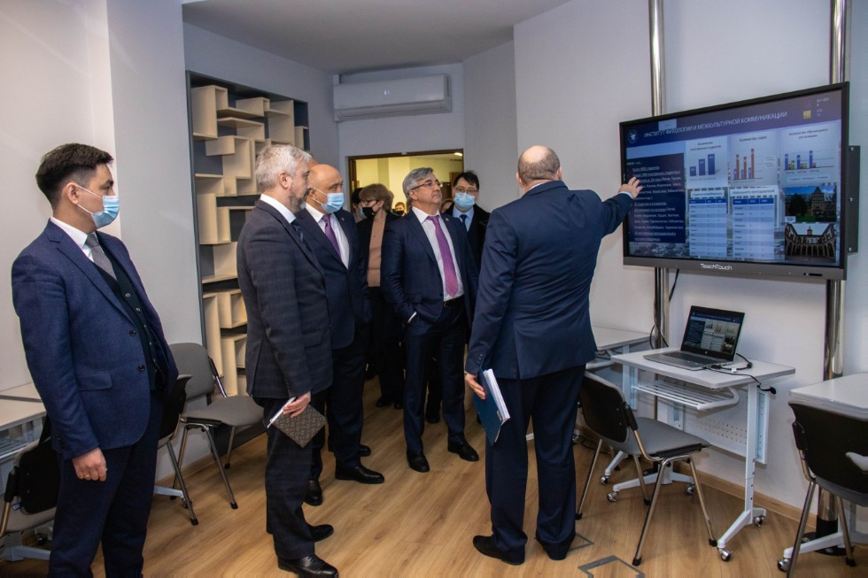 3 февраля Институт филологии и межкультурной коммуникации принял делегацию Федерального агентства по делам Содружества Независимых Государств, соотечественников, проживающих за рубежом, и по международному гуманитарному сотрудничеству во главе с Е.А. Примаковым. Ректор КФУ И.Р. Гафуров и директор ИФМК Р.Р. Замалетдинов познакомили гостей с Институтом, показали аудитории, Центр цифровых образовательных технологий EduTech, модельные классы, представили библиотеку. Декан Высшей школы русского языка и межкультурной коммуникации, профессор, доктор наук Р.Ф. Мухаметшина, директор центра «Институт Каюма Насыри», профессор, доктор наук А.Ш. Юсупова, руководитель научно-исследовательской лаборатории «Интеллектуальные технологии управления текстами», профессор, доктор М.И. Солнышкина продемонстрировали презентационные материалы по международной деятельности Института, Институту Каюма Насыри, продвижению русского языка за рубежом и научно-исследовательской лаборатории «Интеллектуальные технологии управления текстами».