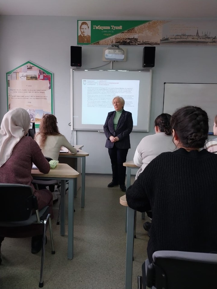 В честь дня рождения выдающегося татарского просветителя Каюма Насыри, 16 февраля 2023 года в базовом центре Института Каюма Насыри Казанского федерального университета была проведена лекция, посвященная обзору жизнедеятельности и творчества ученого. Лекция была представлена директором Института Каюма Насыри, доктором филологическим наук, профессором, известным тюркологом Юсуповой Альфией Шавкетовной. За полтора часа лекции студенты узнали многие детали и грани творчества, научной деятельности и личной жизни великого просветителя. Каюм Насыри многое сделал для развития татарского языка и его сближения с русским, поскольку считал двуязычие ключом к расцвету культуры своего народа. Он был автором трудов по грамматике, фонетике, истории, физике, анатомии, гигиене, математике и даже кулинарии. Просветитель составлял словари и стремился обогатить лексикон татар новыми терминами. Кроме того, мыслитель занимался этнографией и был талантливым фольклористом. Он собрал большую коллекцию сказок, стихов, поговорок, обычаев и обрядов, которые составляют основу культуры татарского народа. Его заслуги были признаны Обществом этнографии, членом которого ученый являлся. Не менее читаемым стал календарь, который содержал не только даты, но и познавательную информацию, из-за чего позже был назван энциклопедическим. Другим направлением работы Каюма Насыри было литературное творчество. Он писал повести и поучительные рассказы, которые были полезны для взрослых и детей. Свои работы мыслитель старался создавать на языке, близком татарскому народу.