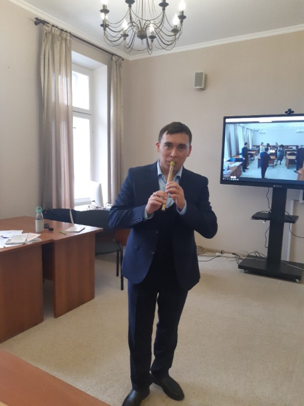 Салихов Ридаль представил методические аспекты обучения игре на традиционных духовных инструментах в системе дополнительного образования. Его выступление сопровождалось исполнением на татарском традиционном духовом инструменте - курае. Модератор секционного заседания «Традиции исполнительства на народных инструментах: история, теория, практика» доктор исторических наук, профессор Казанской консерватории В.И. Яковлев отметил, что данное направление исследования традиционной инструментальной культуры весьма актуально для современной образовательной и исполнительской практики.