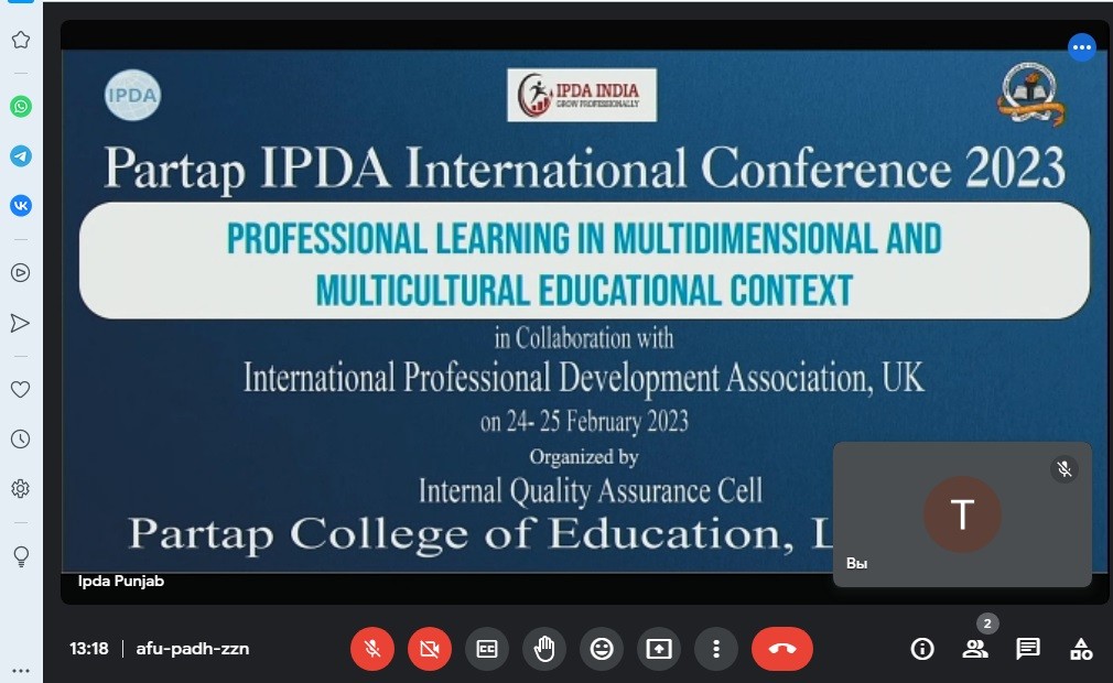 24-25 февраля 2023 года в Партапском педагогическом колледже (Индия) состоялась Международная конференция «Профессиональное обучение в многомерном мультикультурном образовательном пространстве» (Professional learning in multidimensional and multicultural educational context).