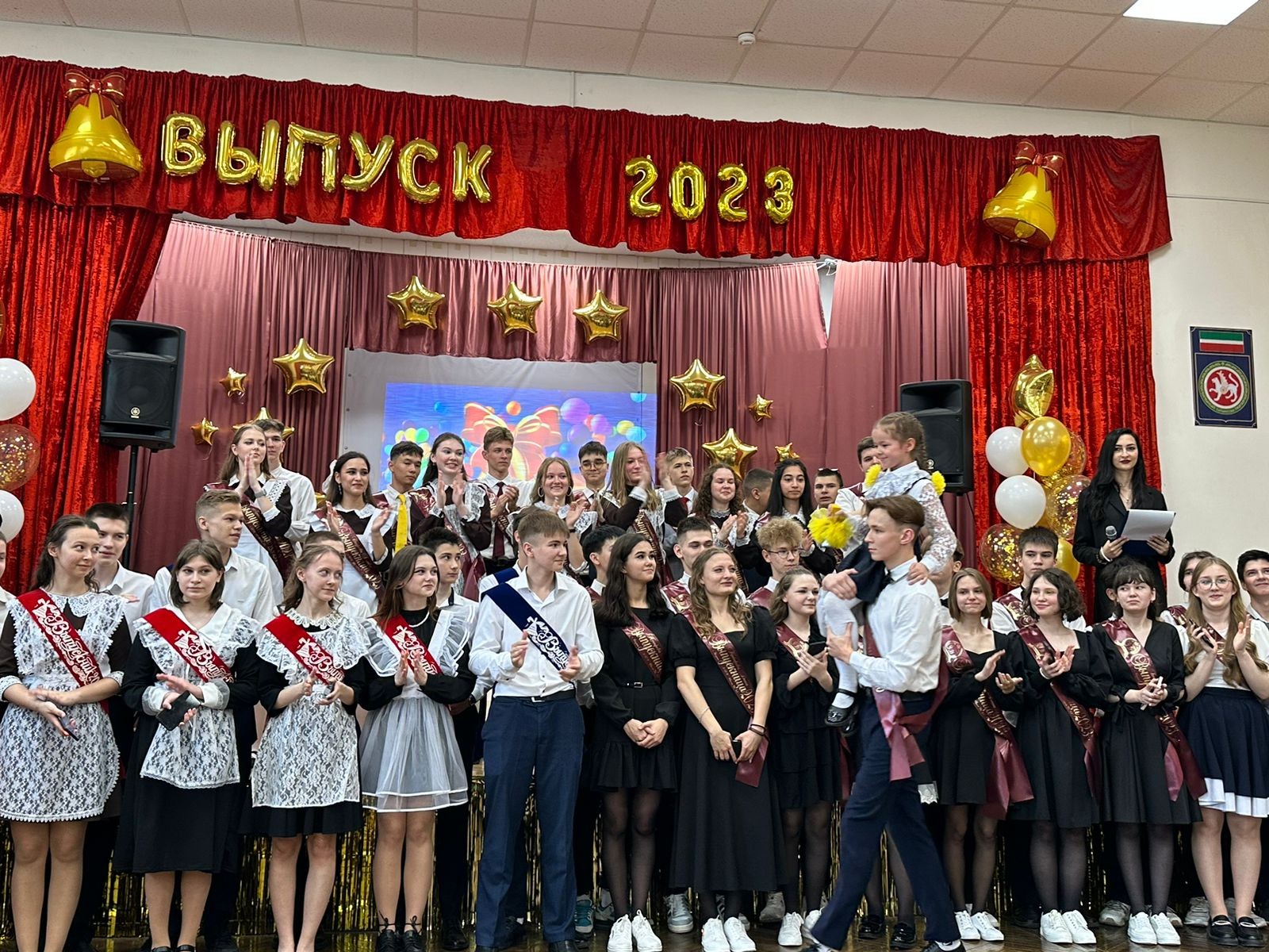 Выпускников поздравляют учителя, родители, первоклассники, гости. Все выступающие желают удачи ребятам!!! Для исполнения желаний, на счастье каждому выпускнику в небо запускают белых голубей или множество шаров.