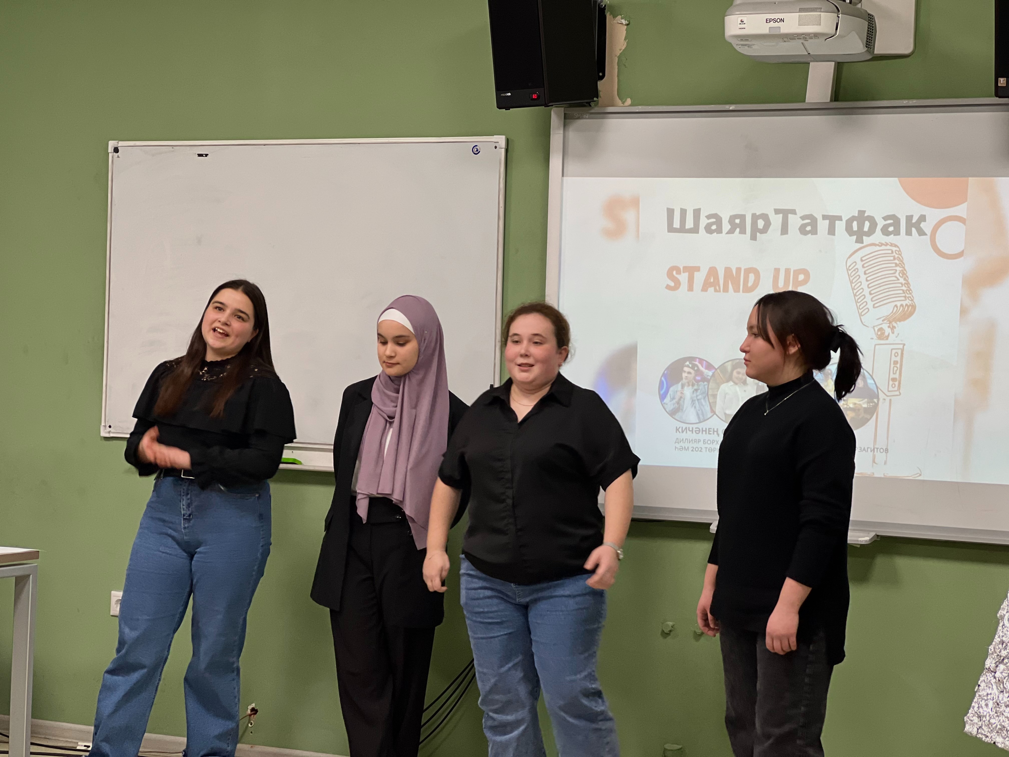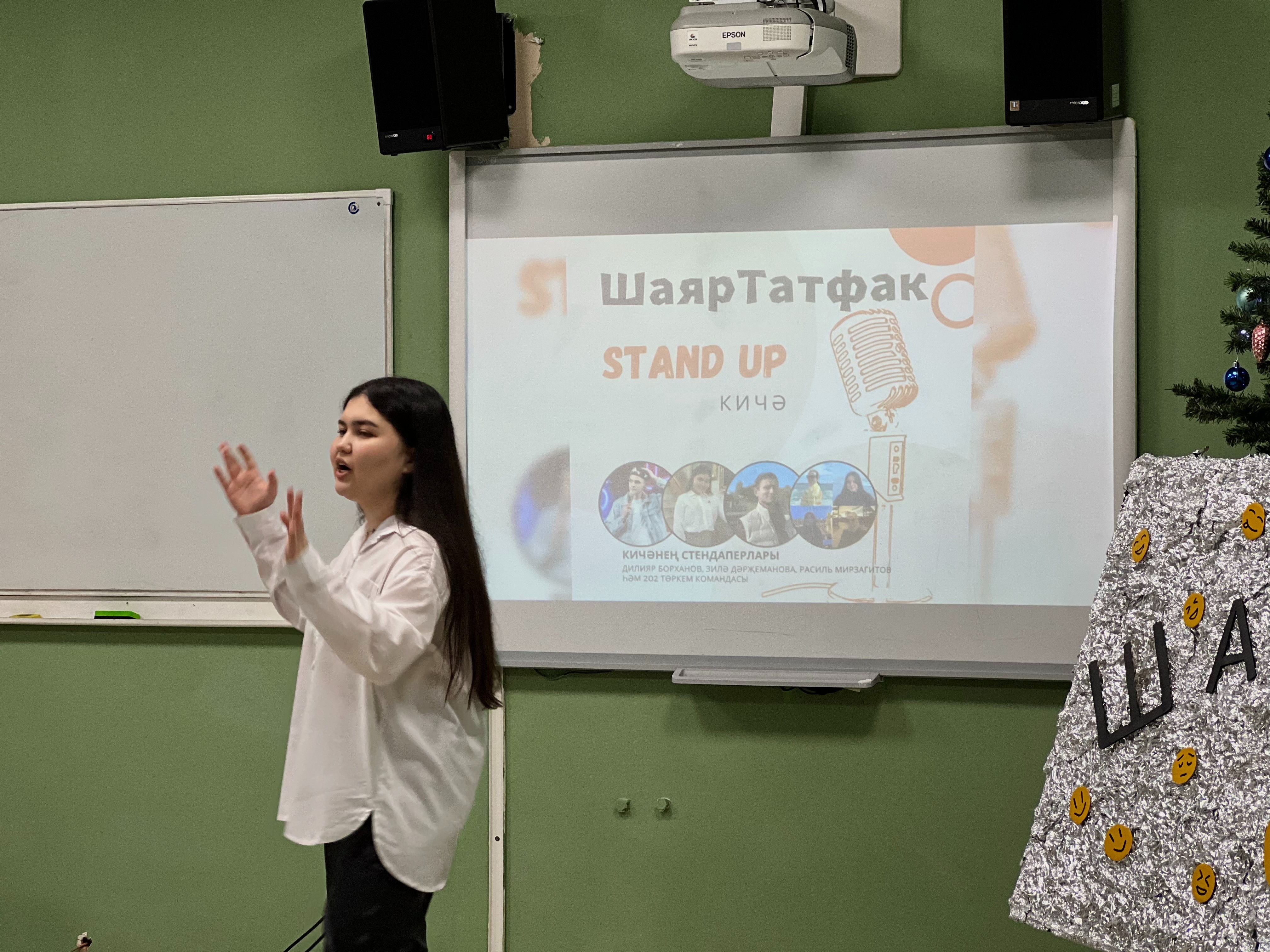 Кичә, ягъни 19 нчы декабрь көнне, Г.Тукай исемендәге милли мәдәният һәм мәгариф Югары мәктәбе активистлары тарафыннан "ШаярТатфак" дип исемләнгән өр-яңа стендап-кичә үткәрелде. "ШаярТатфак" - ул уку йортыбызның иң шаян, үткен юмор хисенә ия студентларын бер урынга туплаган проект. Бу чара институт тарихында әле беренче тәҗрибә булуга карамастан, искиткеч күңелле, истә калырлык булып узды.