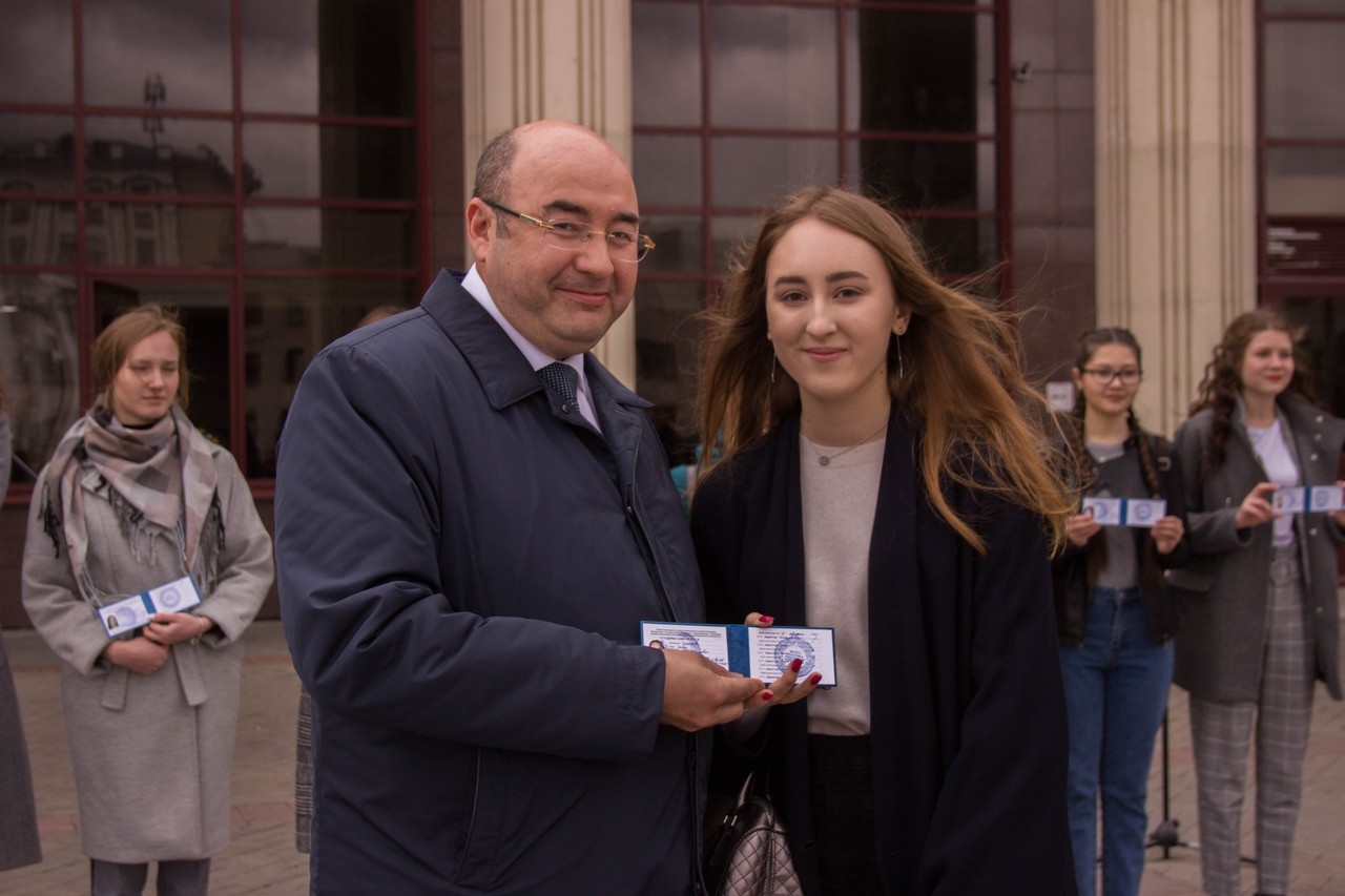 Официально студенческая жизнь для первокурсников началась напутственных слов директора Института филологии и межкультурной коммуникации Замалетдинова Радифа Рифкатовича. Первокурсники познакомились с руководством Института – заместителями директора ИФМК и деканами Высших школ. К напутственным словам директора также присоединились заместитель директора по научной деятельности Ярмакеев Искандер Энгелевич и декан Высшей школы русской и зарубежной филологии им. Льва Толстого Мухаметшина Резеда Фаилевна, поприветствовав студентов, поздравив их с поступлением и пожелав хорошей и плодотворной учебы в грядущем году. От лица студенчества ИФМК перед первокурсниками выступила студентка второго курса Магосимьянова Динара. Как руководитель профориентационного направления Динара рассказала ребятам, что «университет – это не только возможность получить знания, но и возможность реализовать себя». И многие из них уже встали на путь самореализации: после приветственных слов прямо на сцене состоялось торжественное вручение студенческих билетов студентам - высокобалльникам.