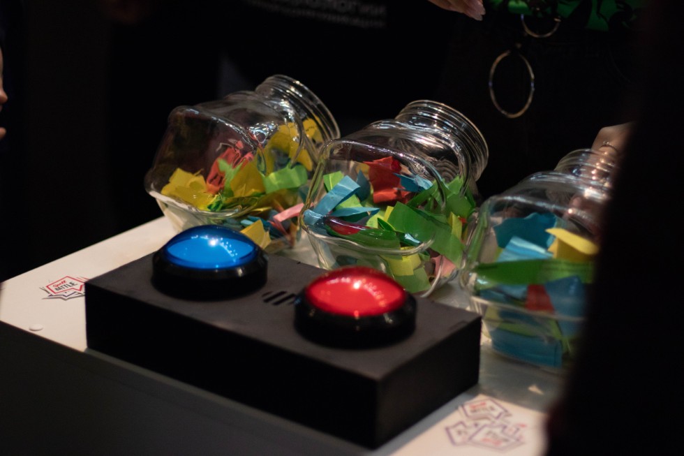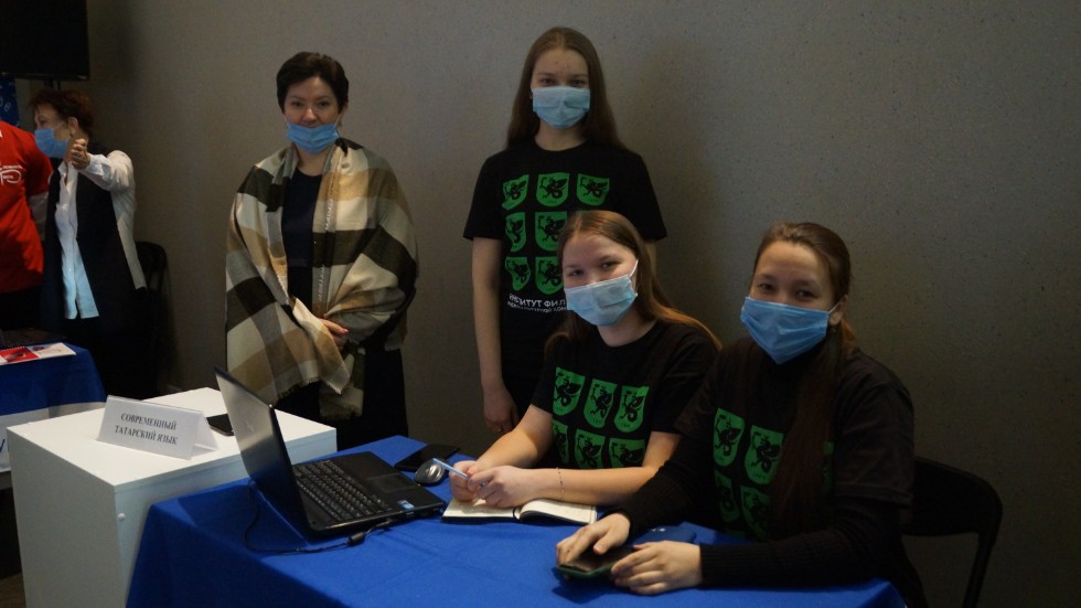 Организаторы и студенты провели одну из своих игр, основной целью которой является правильно произнести слово по буквам алфавита на русском, татарском и английском языках. Игра проходит в форме баттла в парах на скорость с помощью нажатия на кнопку.