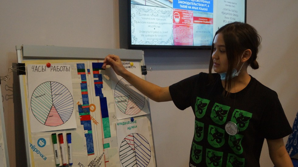 Студенты наглядно показали, каким образом происходит отслеживание языковой политики региона, отраженной в городском лингвистическом пространстве; особенностей графических систем; структурных, функциональных и семантических характеристик наименований. Также провели мастер-класс по картографированию лингвистического пространства мультилингвального города.