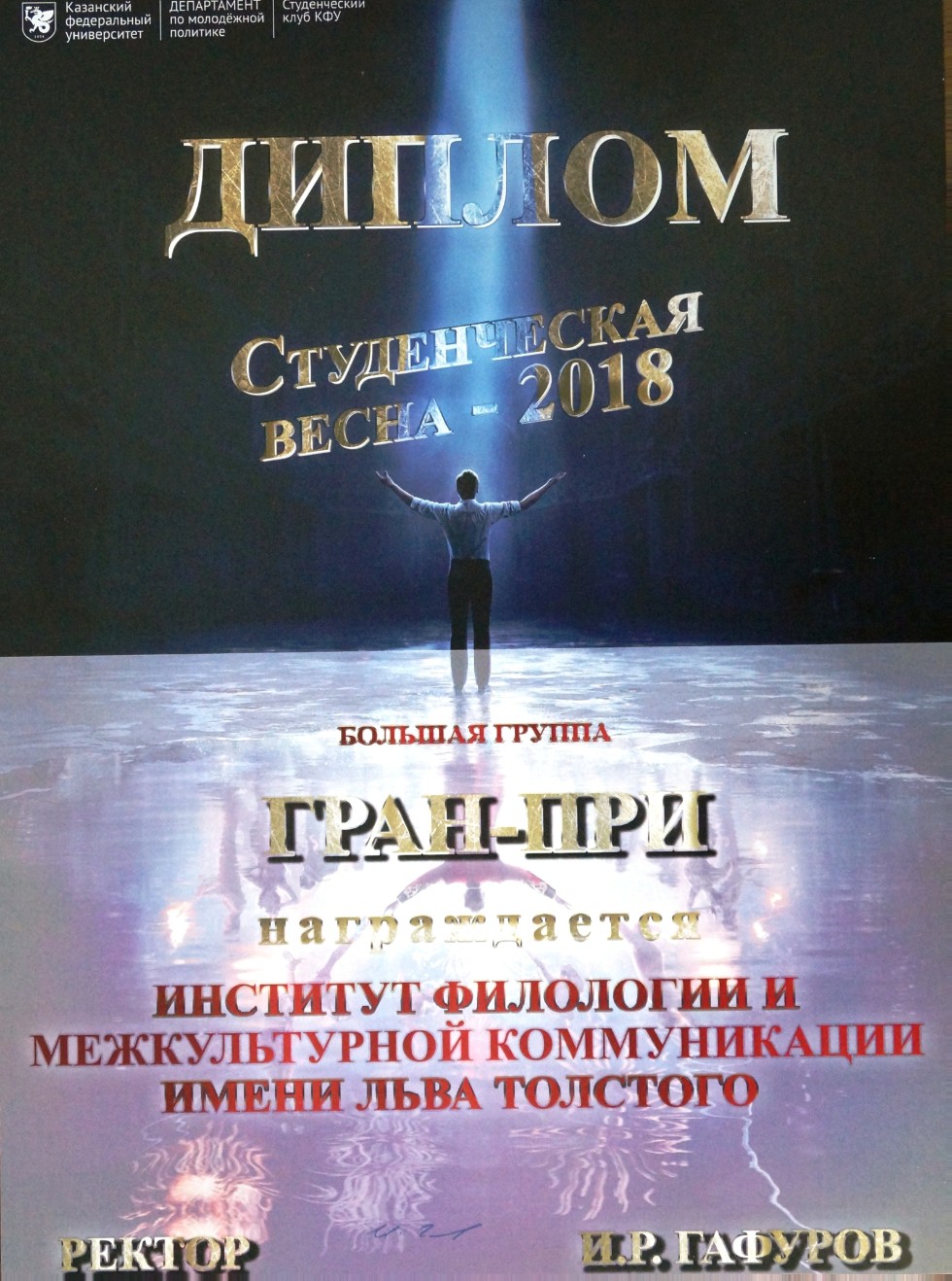 Ежегодный фестиваль КФУ «Студенческая весна – 2018» – Гран-при