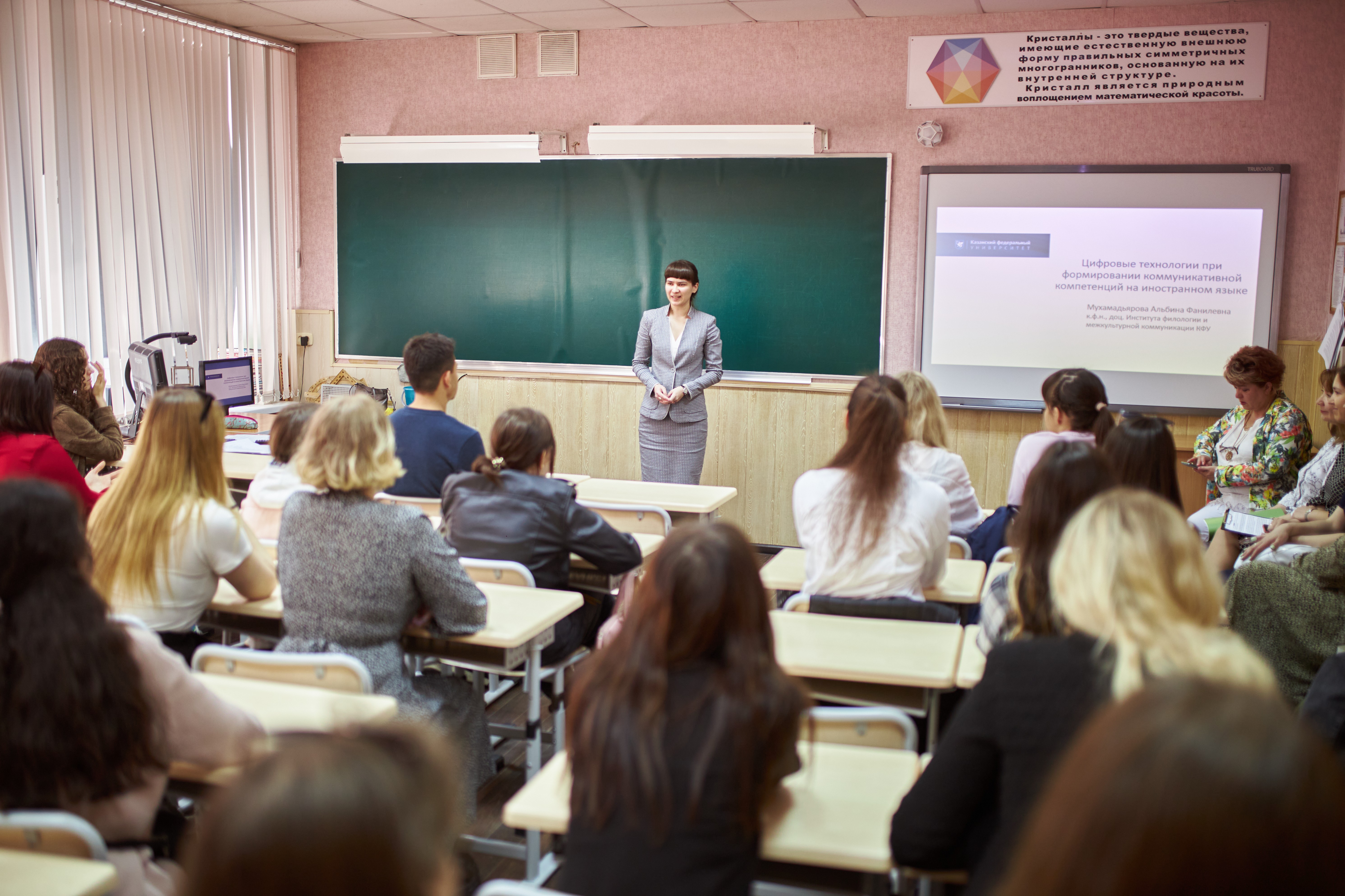 Студенты Высшей школы русской и зарубежной филологии им. Льва Толстого посетили МБОУ «Гимназия №94» Московского района г. Казани. В рамках реализации проекта #Прощеговоря студенты ознакомились с историей гимназии, узнали формы и методы работы взаимодействия с обучающимися, посетили мастер – классы и уроки по немецкому языку учителей гимназии. Доцент кафедры теории и практики преподавания иностранных языков Мухамадьярова Альбина Фанилевна провела для учителей и студентов мастер – класс по использованию мультимедийных и компьютерных технологий в преподавании иностранных языков.