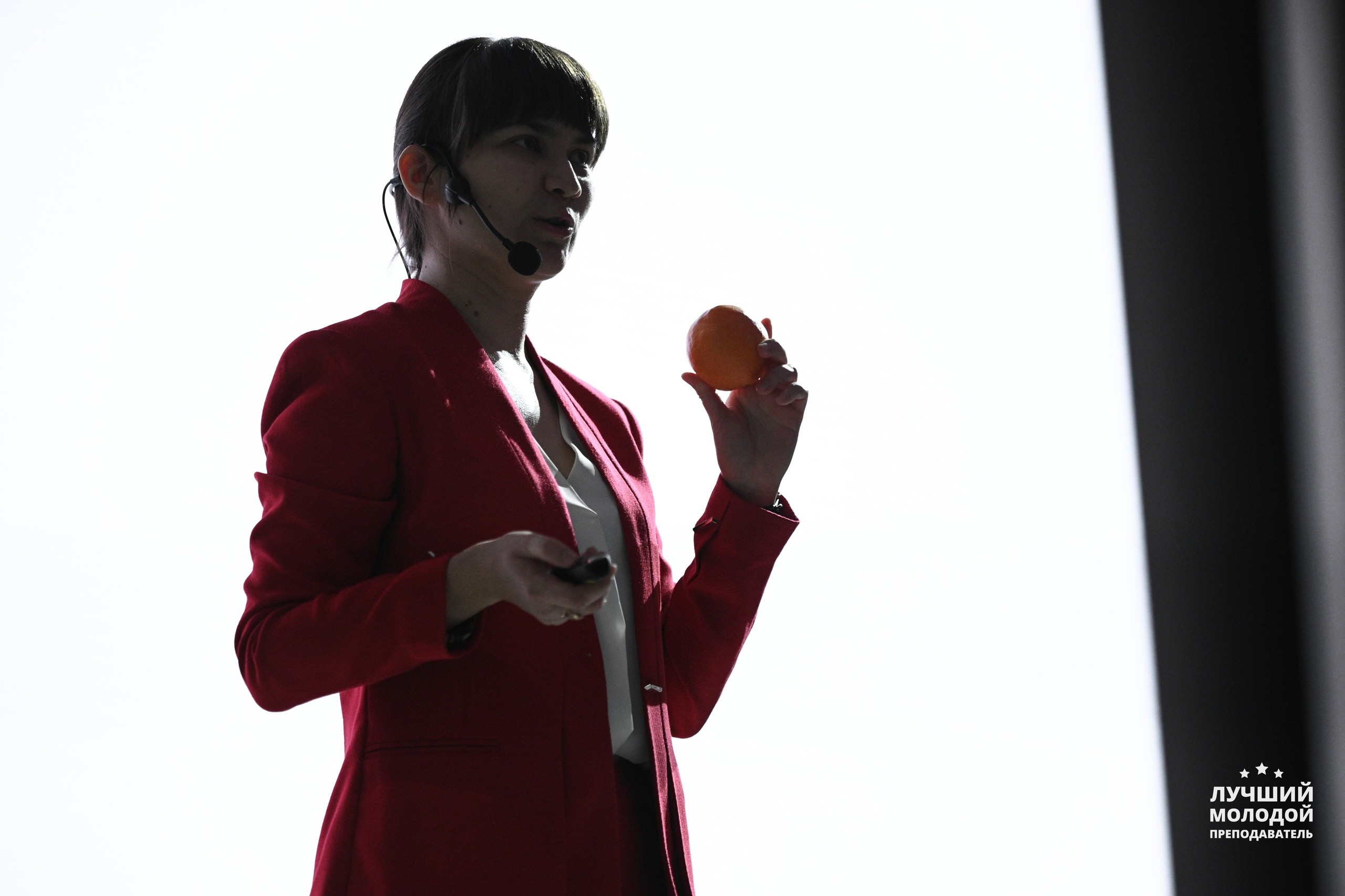 В заключительном туре участники выступили с лекцией в формате TED по своему предмету, продемонстрировав ораторские качества, способность представлять информацию по теме, умение воспринимать и управлять энергией аудитории. Альбина Фанилевна представила лекцию по теме «5 неочевидных способов улучшить иностранный язык». Она поделилась стратегиями и методами, которые помогают улучшить иностранный язык весело, легко и с удовольствием. Участница раскрыла возможности внедрения геймификации, челленджей, искусственного интеллекта при изучении иностранных языков. Она подчеркнула, что изучение другого языка – это изучение другого способа мыслить. Выступление получилось интерактивным, живым и вдохновляющим.