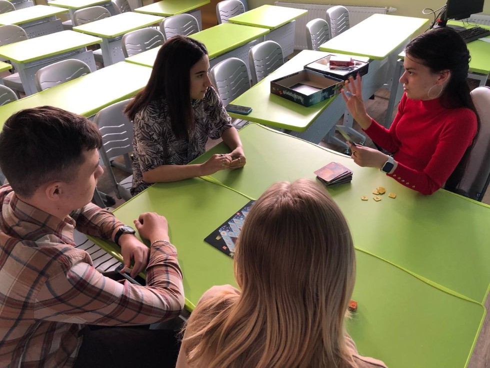 На последнем занятии абитуриенты и сотрудник Центра профориентационной работы и взаимодействия с работодателями ИФМК КФУ Гимадиева Эльвира играли в увлекательную лингвистическую игру "Imagine". В ходе игры ребята развивали ассоциативное мышление и навыки общения на английском языке.