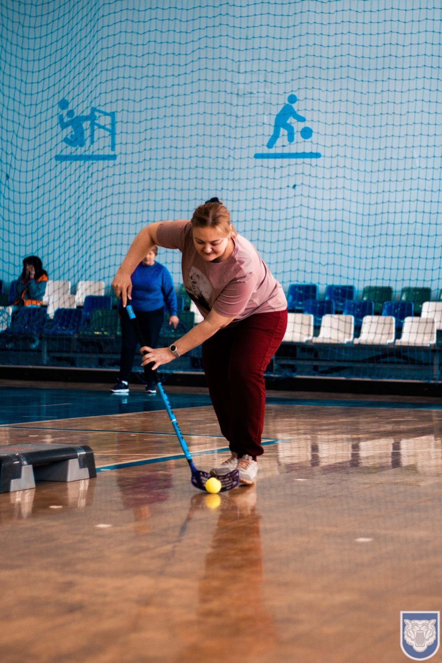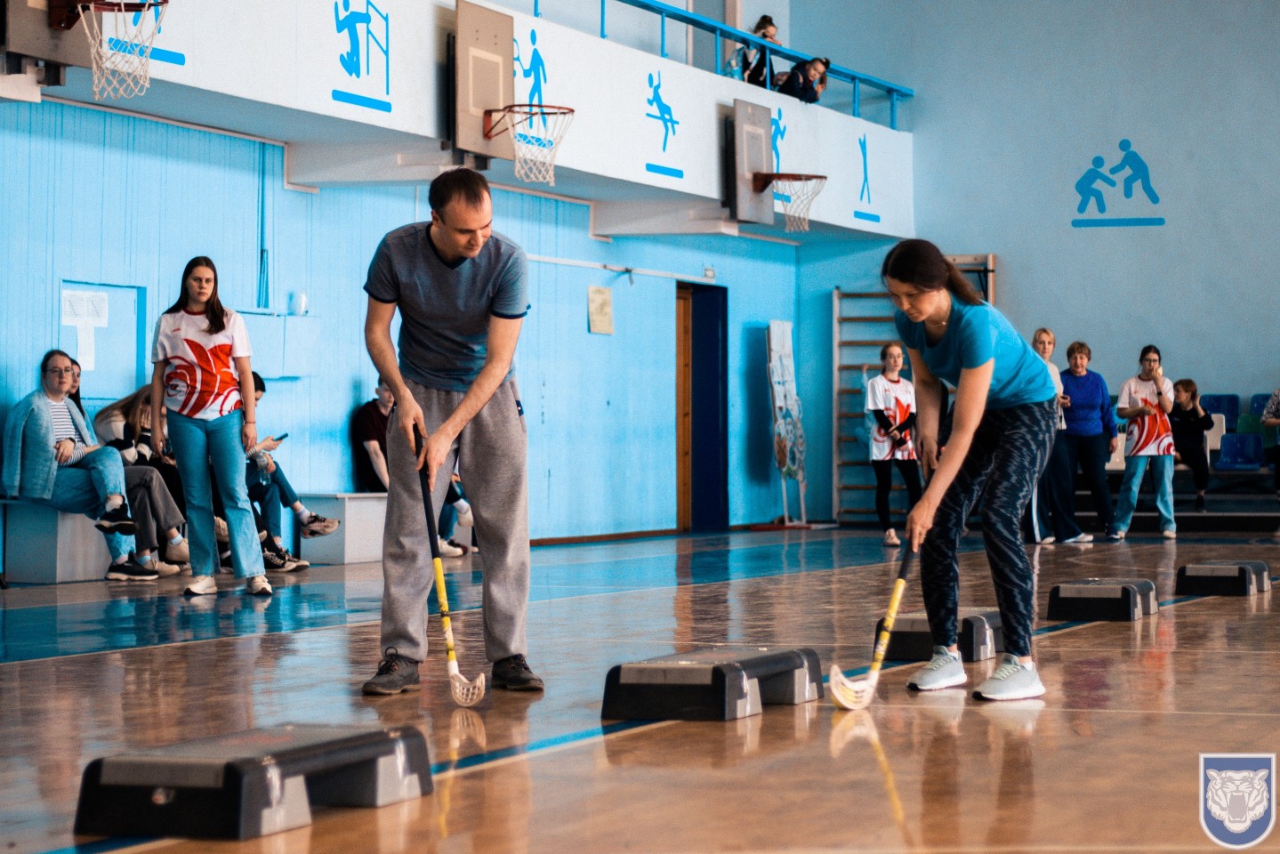 Наталья Петровна провела музыкальную разминку перед предстоящей спортивной эстафетой.