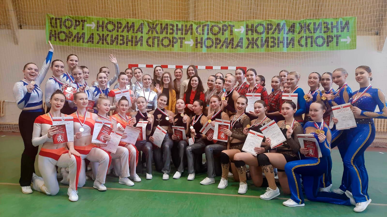 1 - е место в дисциплине «аэробика 5 человек» команда «Амазонки», тренеры: Маслова Л.П., Молькова Е.В.