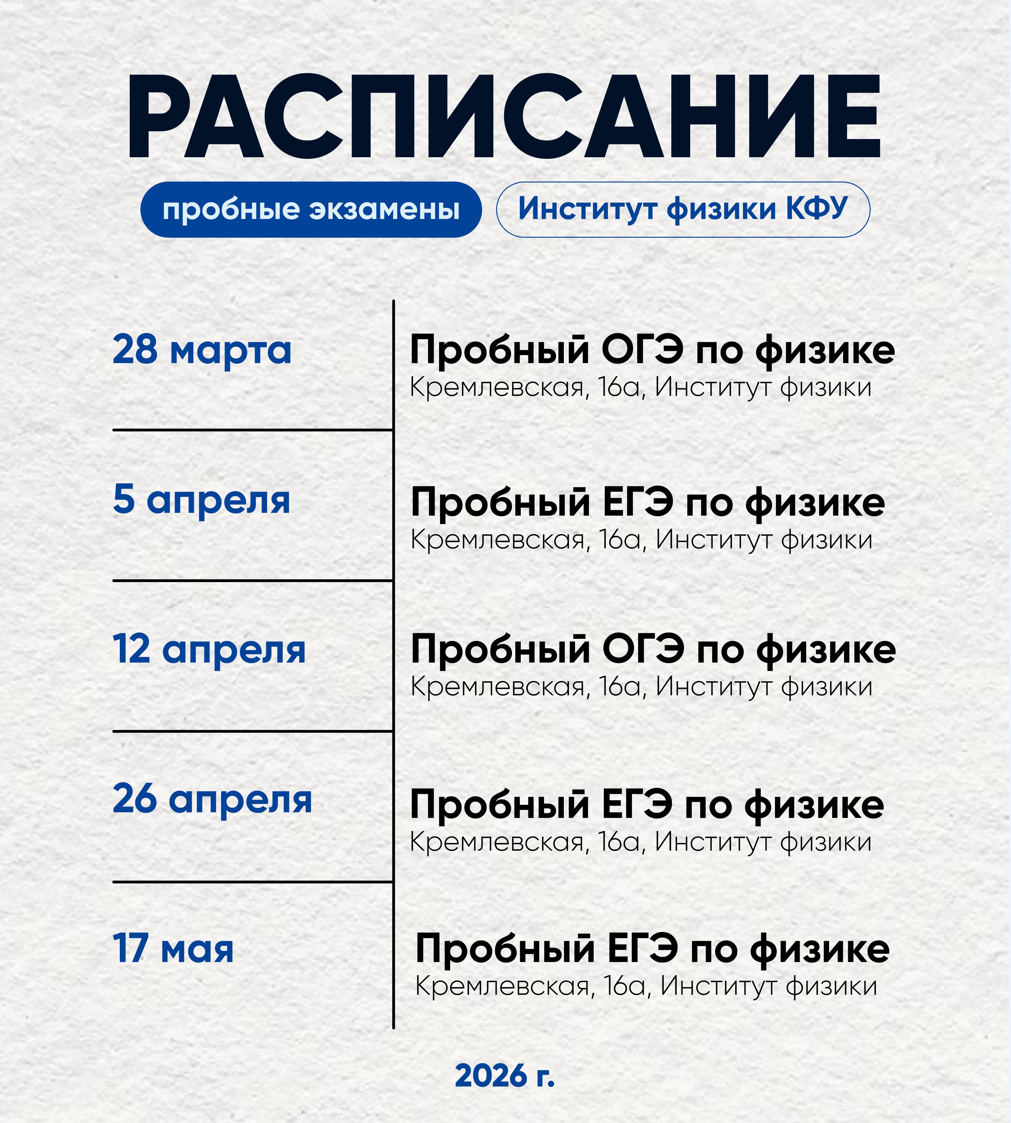 Расписание пробных экзаменов по физике в Институте физики КФУ