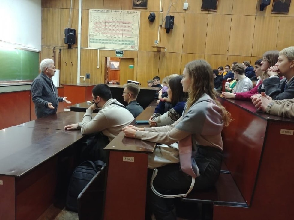 На встрече со студентами доктор физико-математических наук, профессор, заведующий кафедрой медицинской физики Аганов Альберт Вартанович выступил на тему, о важности правильного выбора траектории движения в образовании, в том числе о необходимости осознанного выбора дальнейшего своего пути (идти в магистратуру с целью повышения квалификации).