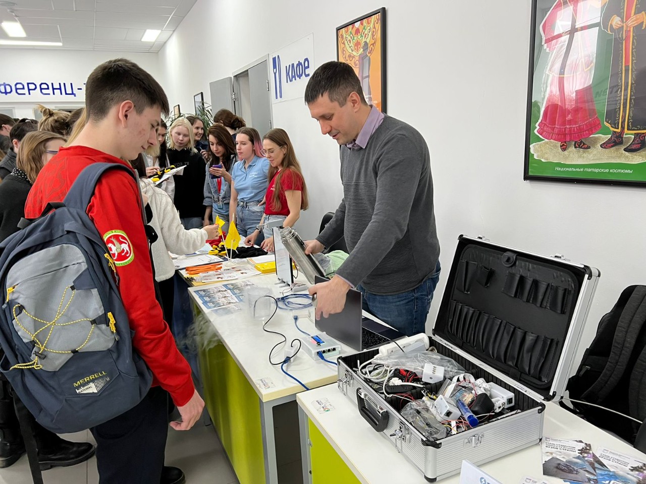 9 февраля заместитель директора по образовательной деятельности Гарнаева Гузель Ильдаровна, заместитель директора по международной деятельности Саъдиев Улугбек Мубинджонович и сотрудник кафедры общей физики Ирисов Денис Сергеевич посетили ярмарку вакансии "Будущее выбирают с нами" в Казанском техникуме информационных технологии и связи. На ярмарке сотрудники Института показали физические эксперименты, рассказали про профили подготовки в Институте физики, в которых осуществляется взаимосвязь физики и информатики.