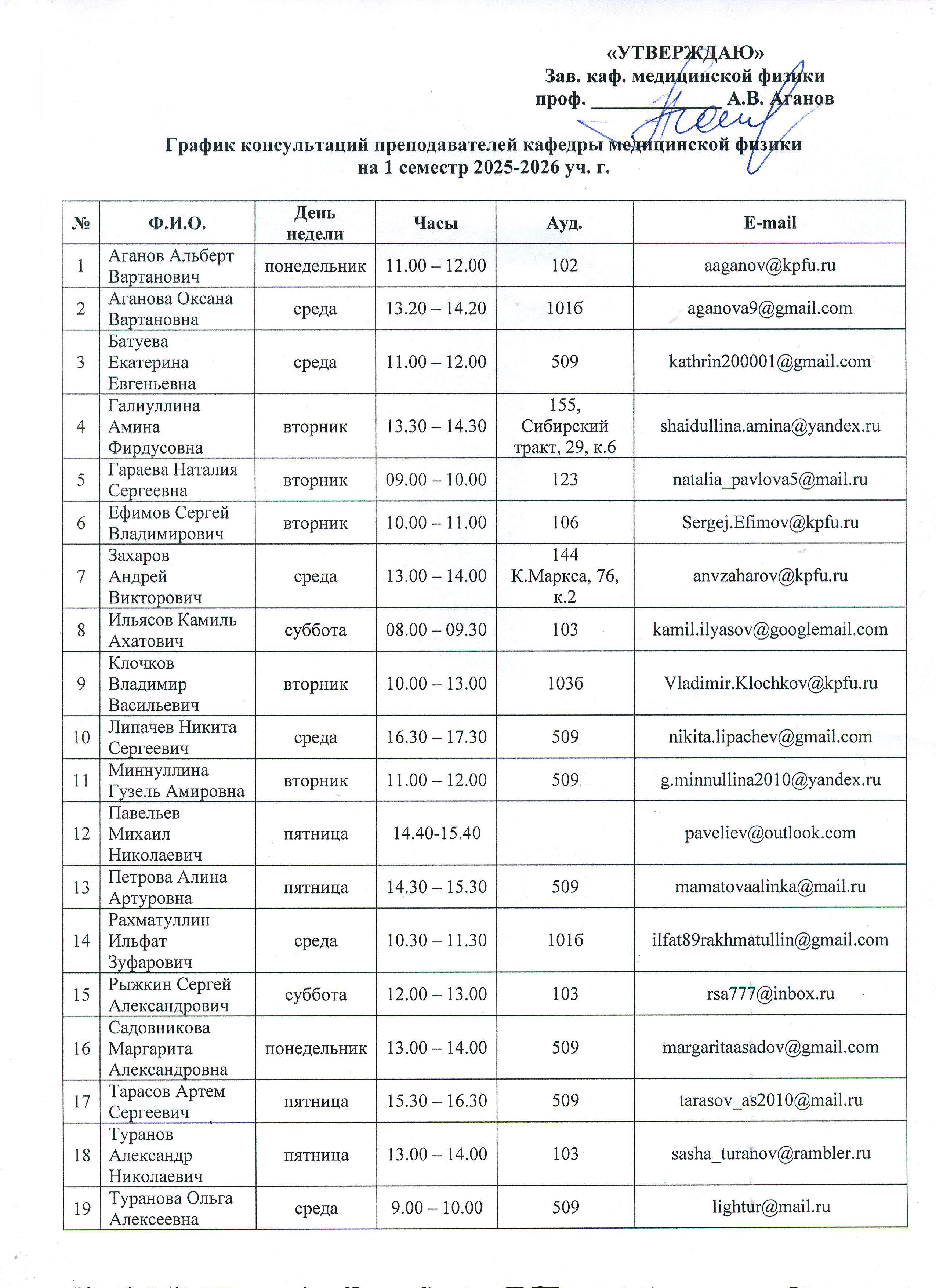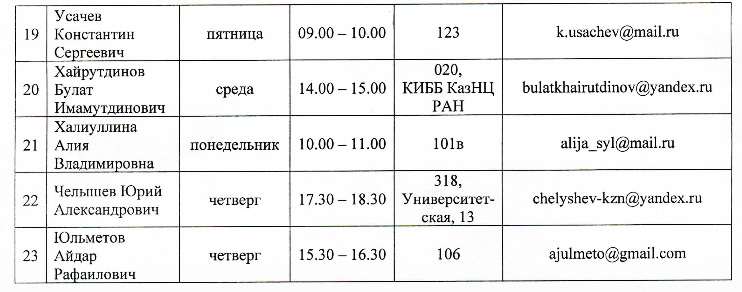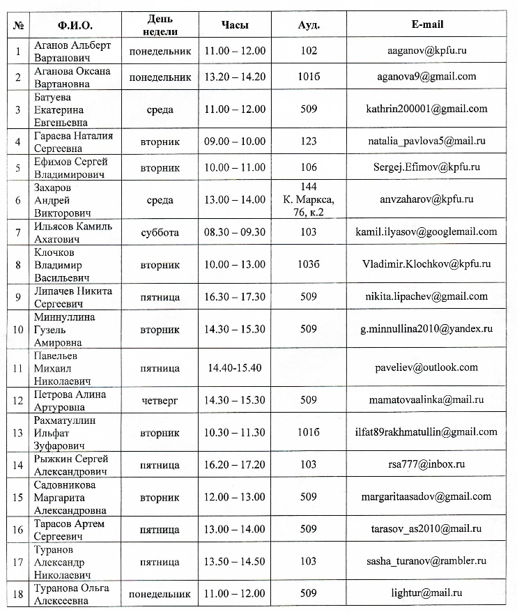 График консультаций преподавателей\Кафедра медицинской физики - Казанский (Приволжский) федеральный университет