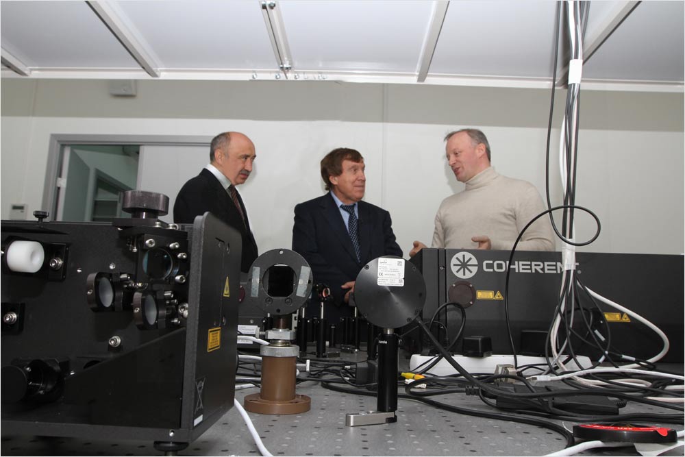 Ректор Ильшат Гафуров провел небольшую экскурсию по Институту физики, в ходе которой были осмотрены учебные практикумы и научные лаборатории и те помещения, в которых еще идет ремонт. Гость, не переставая удивляться произошедшим переменам, расспрашивал обо всем сотрудников кафедр.