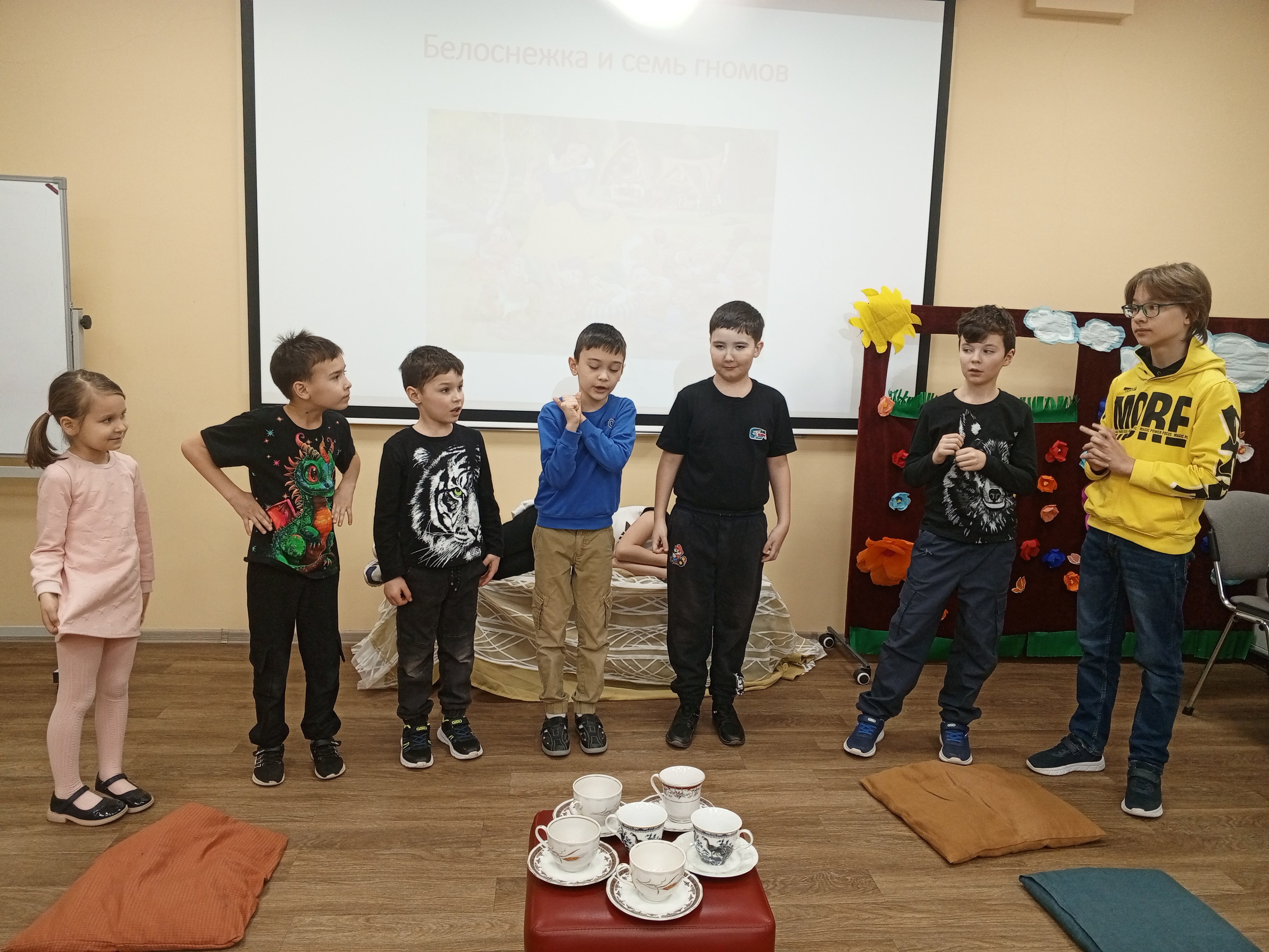 Наши юные актеры прекрасно справляются с ролями. Каждое удачное движение на сцене, правильно произнесенная реплика вызывает у самих же детей аплодисменты и радостные улыбки. Это говорит о том, что юные актеры научились отличать настоящую игру от лицедейства, вкладывают в свою роль максимум сил и творчества. От занятия к занятию растут и развиваются актерские навыки учащихся Волчковой Варвары, Ненилиной Анастасии, Калимуллиной Регины, Степановой Валерии, Ахмедгараева Карима, Сотникова Михаила, Салихова Тимура, Хусаиновых Дамира и Ильдара, Серазетдинова Шамиля, Ганачевского Марка.