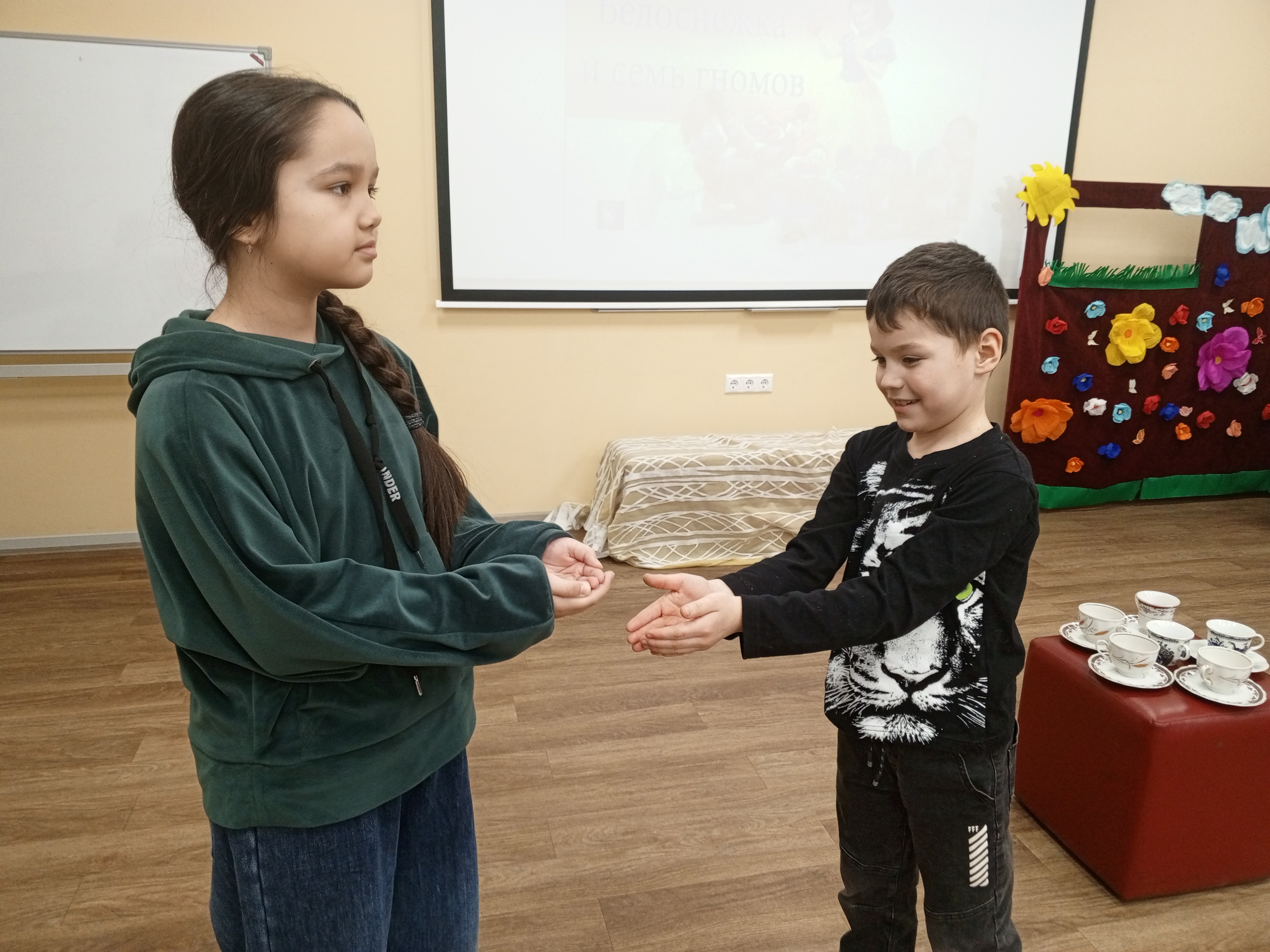 Студенты-наставники детского театра показывают большие результаты в оформлении декораций, реквизита, изготовлении афиш и театральных программ к двум спектаклям. Огромную работу проделала Таирова Александра как помощник режиссера-постановщика театра Камаловой Л.А. Большую помощь оказали Минхатыпова Алина, Ивановская Милана, Гушан Валерия, Хабибуллина Эльвина, Вафина Диляра, Кирилова Юлия, Алламбергенова Мавлуда, Ахатова Динара.
