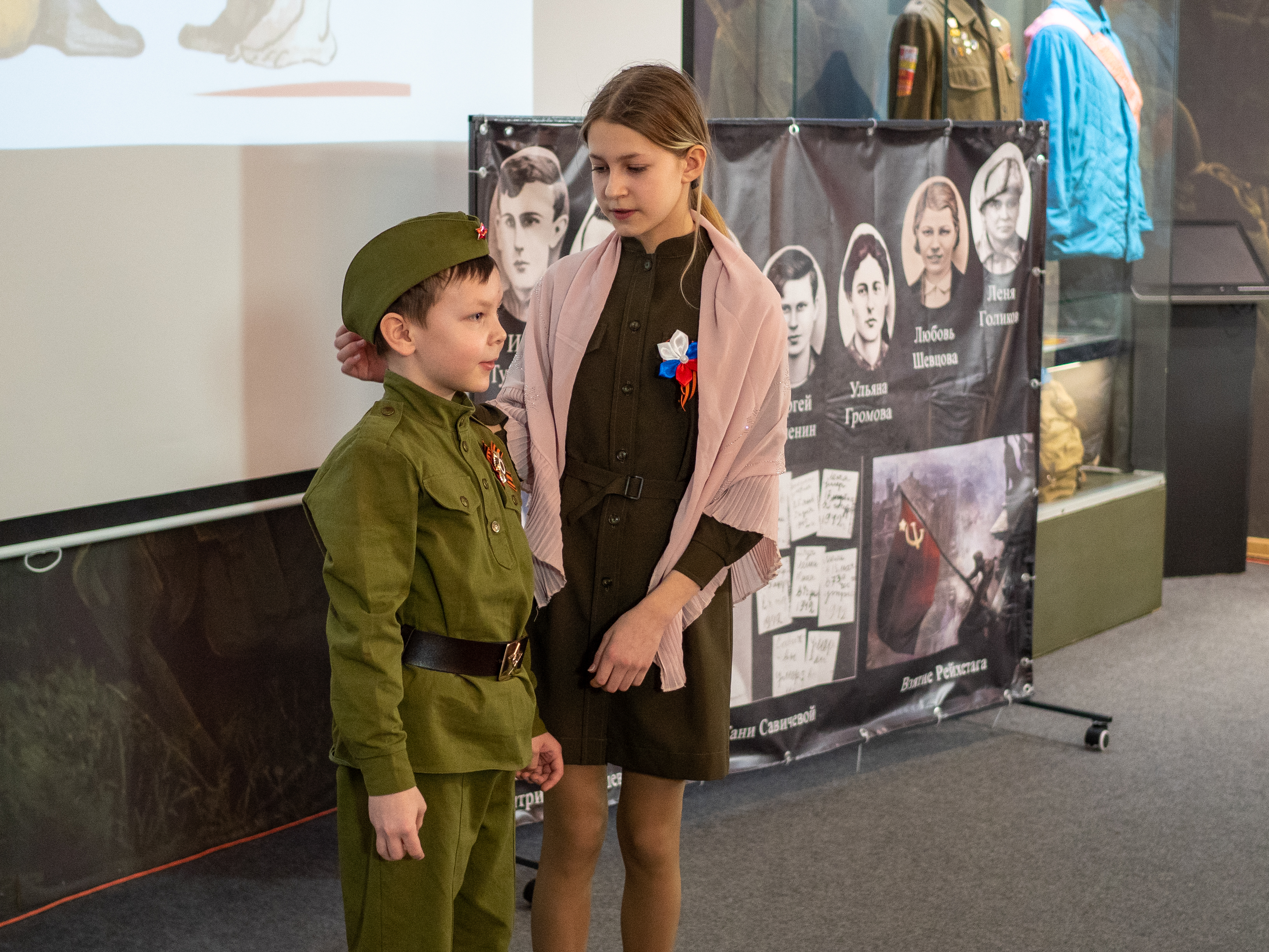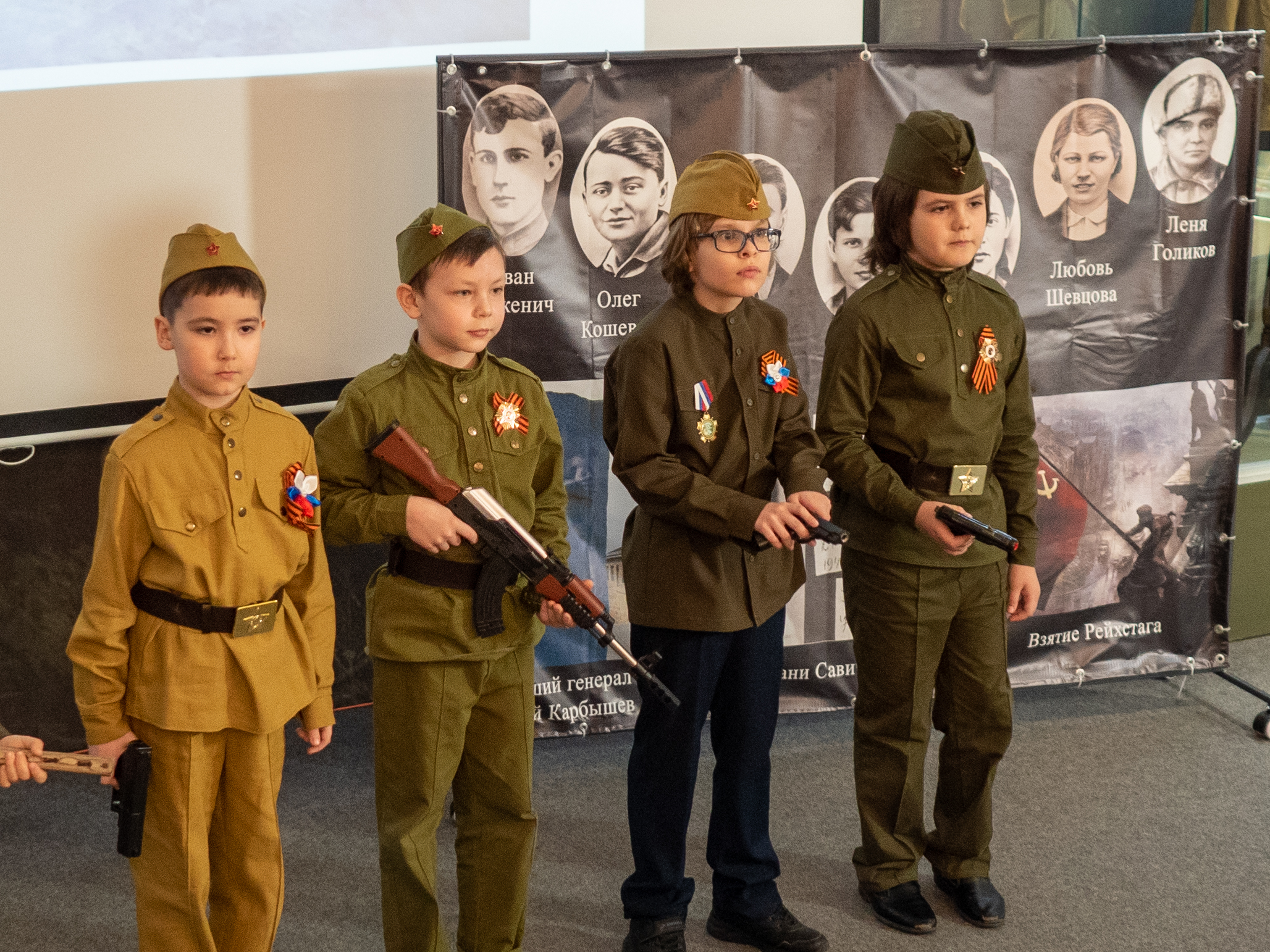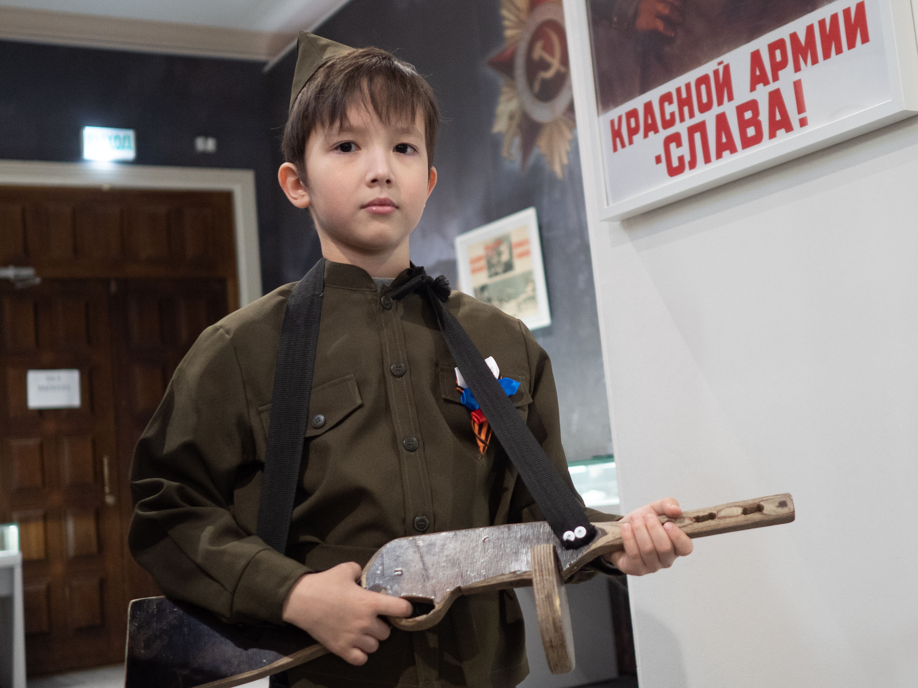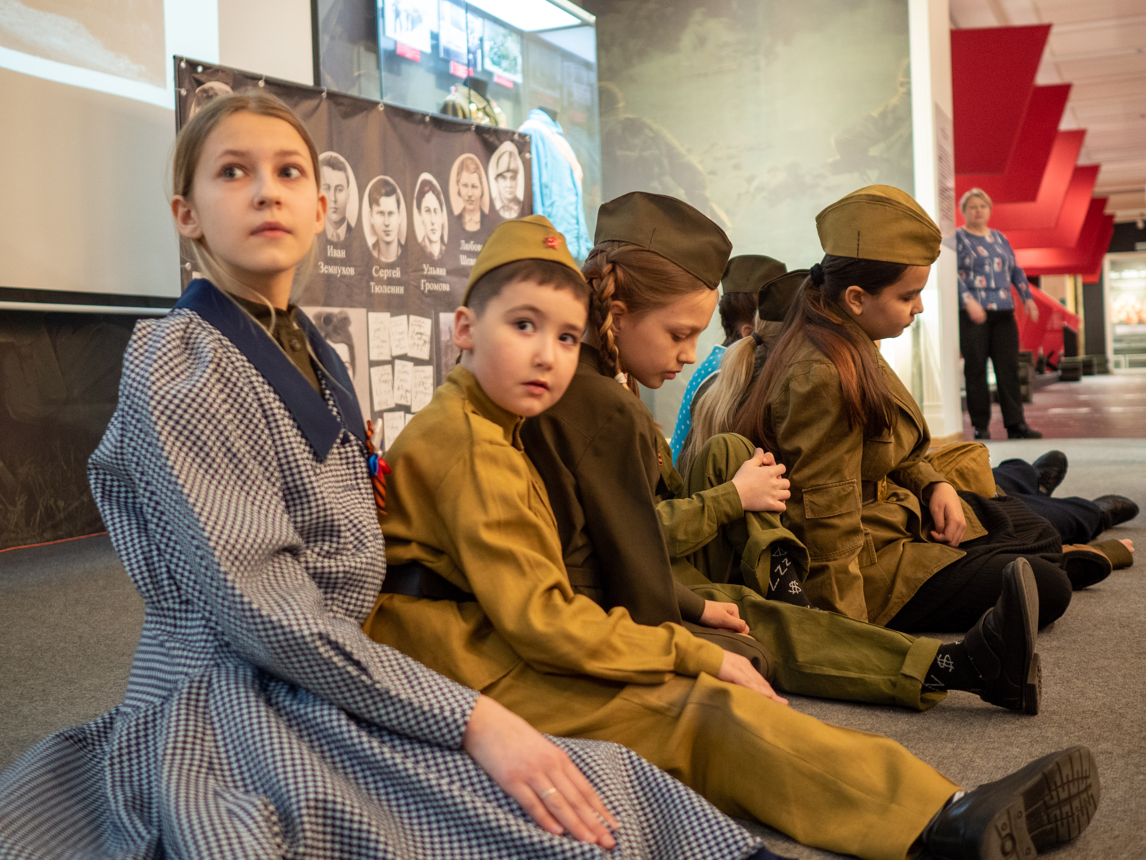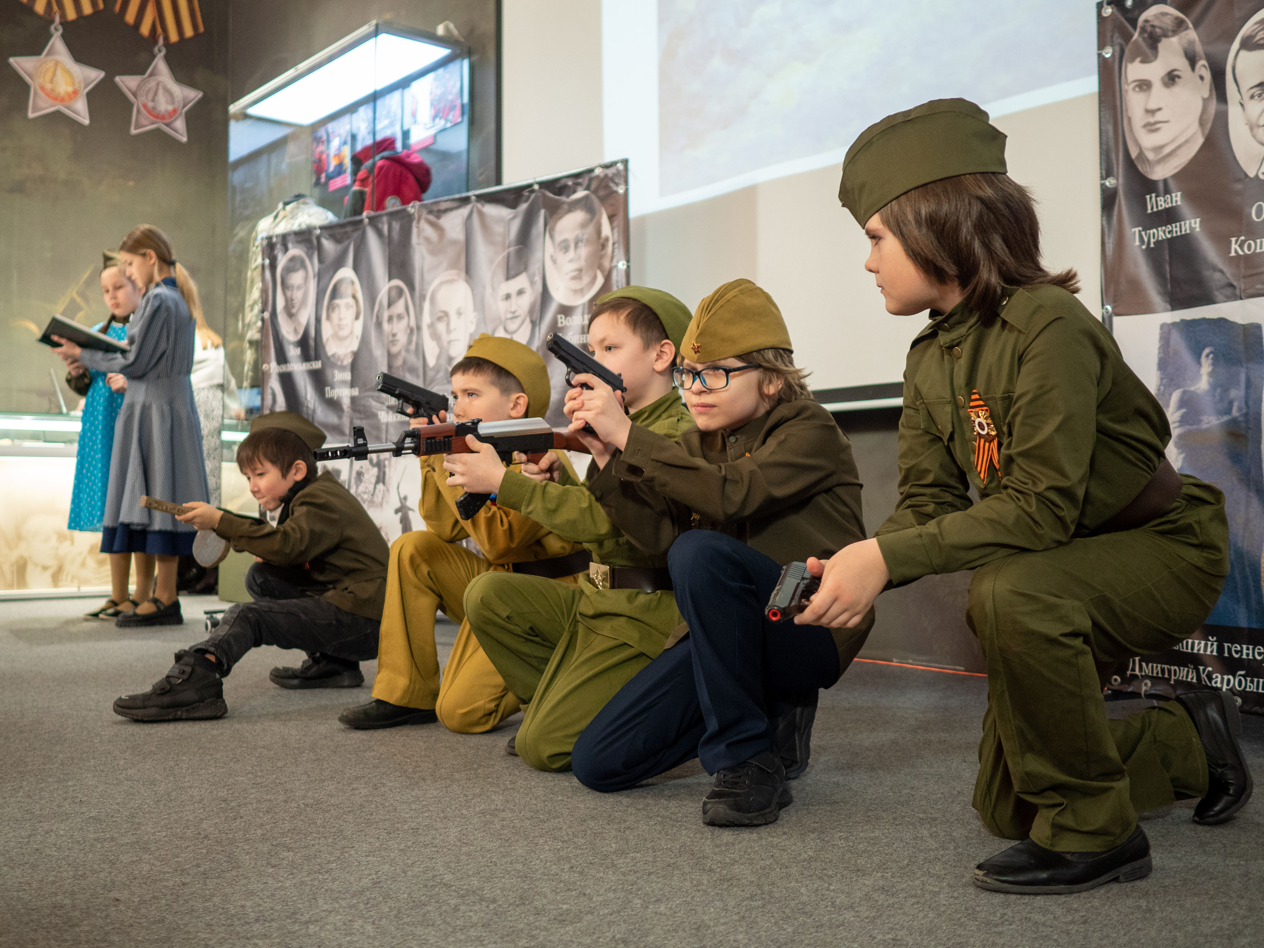 24 марта труппа детского театра "Радуга" КФУ представила постановку "Юные герои Великой Отечественной войны" в Музее истории Великой Отечественной войны Казанского кремля. Это уже второй показ спектакля на зрителя. Первый прошёл в* Институте психологии и образования, преимущественно для родителей и сотрудников Института; когда как показ в кремлёвском музее собрал самых разных зрителей: от сотрудников музея, до случайных посетителей. Дети представили свой перфоманс в одном из залов посвящённых ВОВ, аккурат во время проведения экскурсии.
