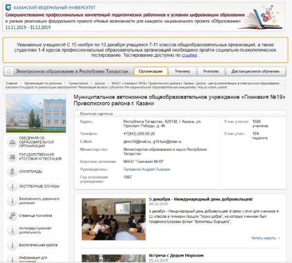 Информационный баннер о реализуемом проекте с 9.12.19 по 17.12.19 размещен на разработанном в Республике Татарстан образовательном портале edu.tatar.ru. (более 120 000 уникальных посетителей в год).